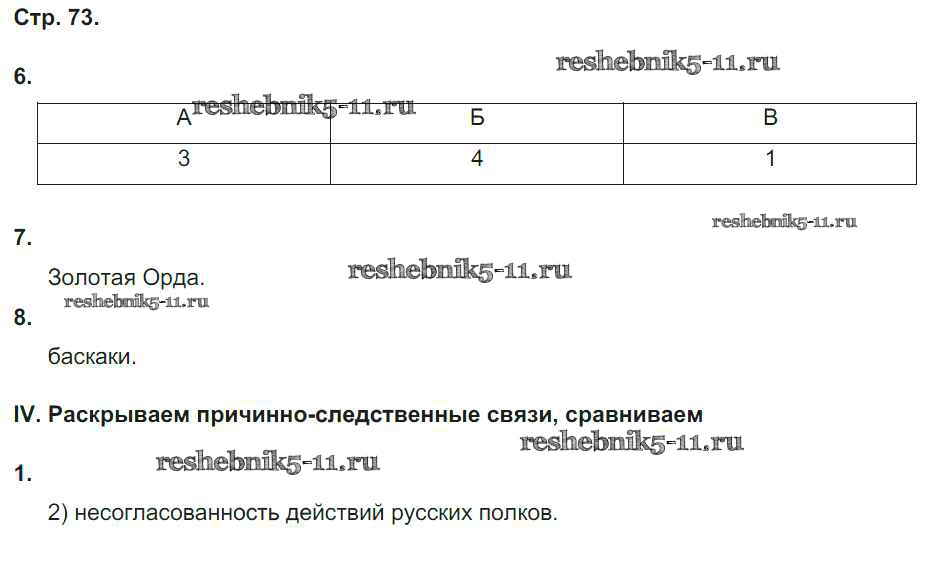 Готовая домашняя работа с ответами по Истории за 6 класс Гевуркова Рабочая тетрадь УМК Экзамен 2018 ФГОС - Страницы тетради 73