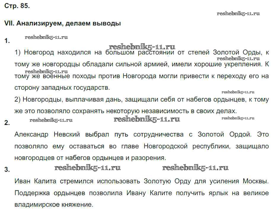История за 6 класс Гевуркова Рабочая тетрадь УМК Экзамен страница № 85