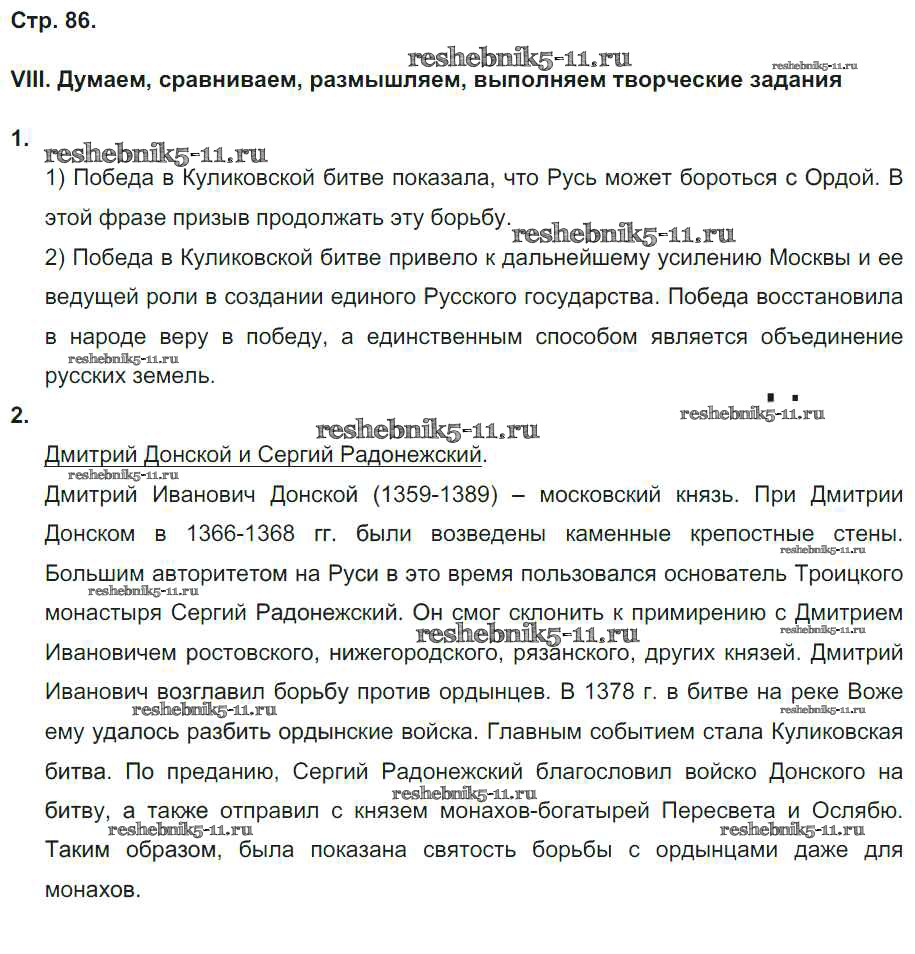 Готовая домашняя работа с ответами по Истории за 6 класс Гевуркова Рабочая тетрадь УМК Экзамен 2018 ФГОС - Страницы тетради 86