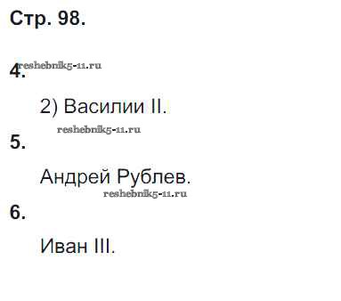 Готовая домашняя работа с ответами по Истории за 6 класс Гевуркова Рабочая тетрадь УМК Экзамен 2018 ФГОС - Страницы тетради 98