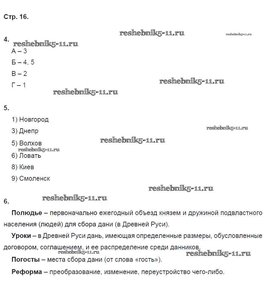 Готовая домашняя работа с ответами по Истории за 6 класс Клоков, Симонова Рабочая тетрадь Вертикаль Дрофа 2018 ФГОС - Страницы тетради 16