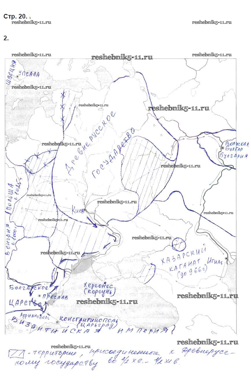 Готовая домашняя работа с ответами по Истории за 6 класс Клоков, Симонова Рабочая тетрадь Вертикаль Дрофа 2018 ФГОС - Страницы тетради 20