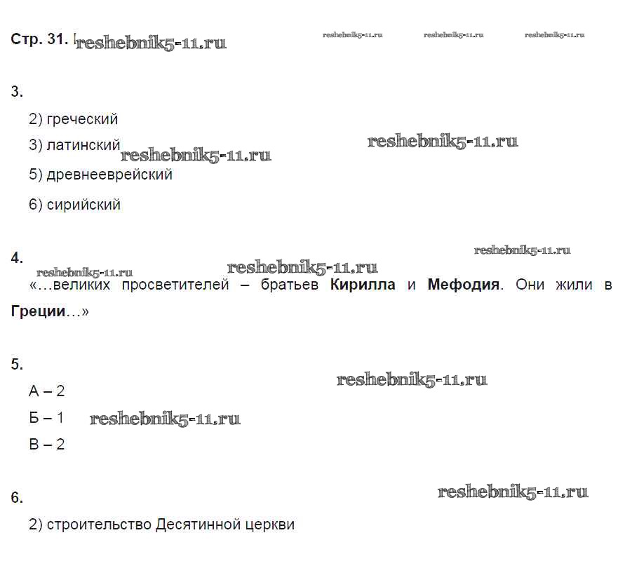 Готовая домашняя работа с ответами по Истории за 6 класс Клоков, Симонова Рабочая тетрадь Вертикаль Дрофа 2018 ФГОС - Страницы тетради 31