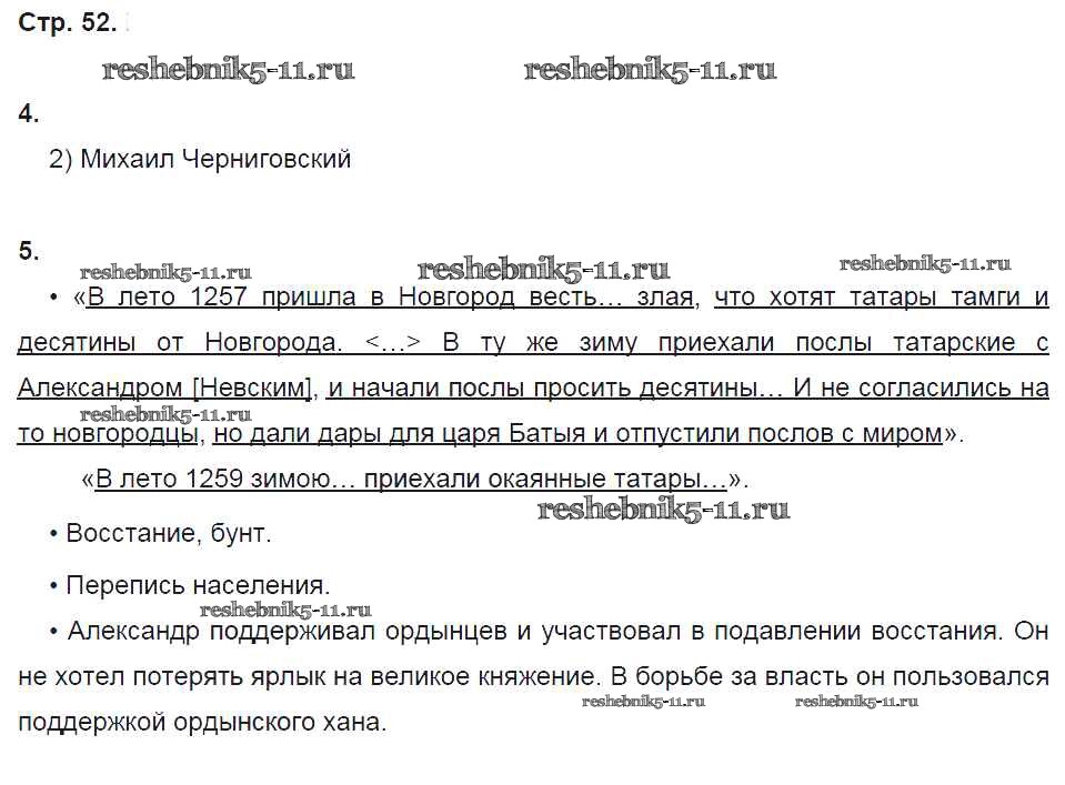 Готовая домашняя работа с ответами по Истории за 6 класс Клоков, Симонова Рабочая тетрадь Вертикаль Дрофа 2018 ФГОС - Страницы тетради 52