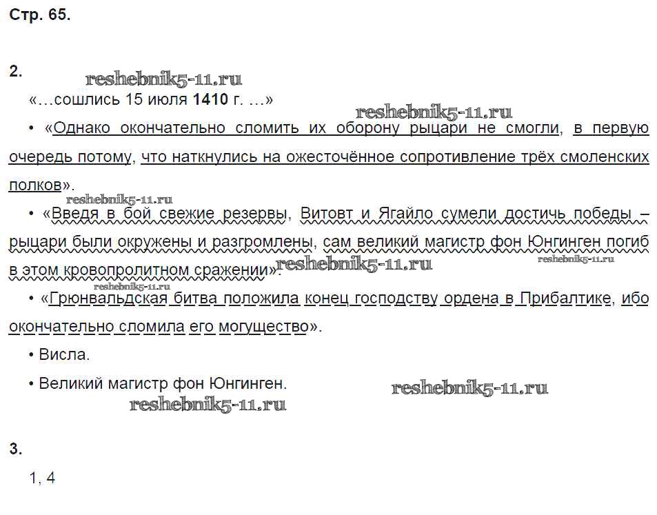 Готовая домашняя работа с ответами по Истории за 6 класс Клоков, Симонова Рабочая тетрадь Вертикаль Дрофа 2018 ФГОС - Страницы тетради 65