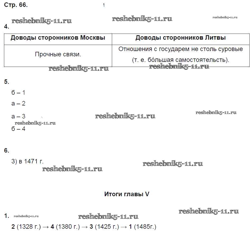 Готовая домашняя работа с ответами по Истории за 6 класс Клоков, Симонова Рабочая тетрадь Вертикаль Дрофа 2018 ФГОС - Страницы тетради 66