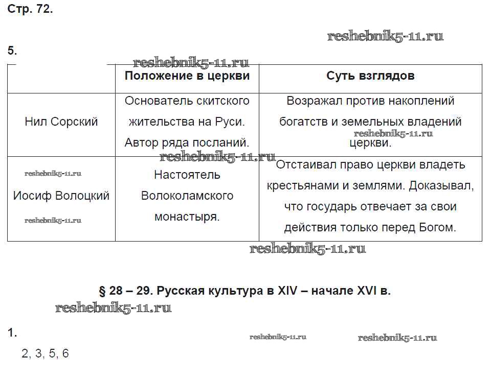 Готовая домашняя работа с ответами по Истории за 6 класс Клоков, Симонова Рабочая тетрадь Вертикаль Дрофа 2018 ФГОС - Страницы тетради 72