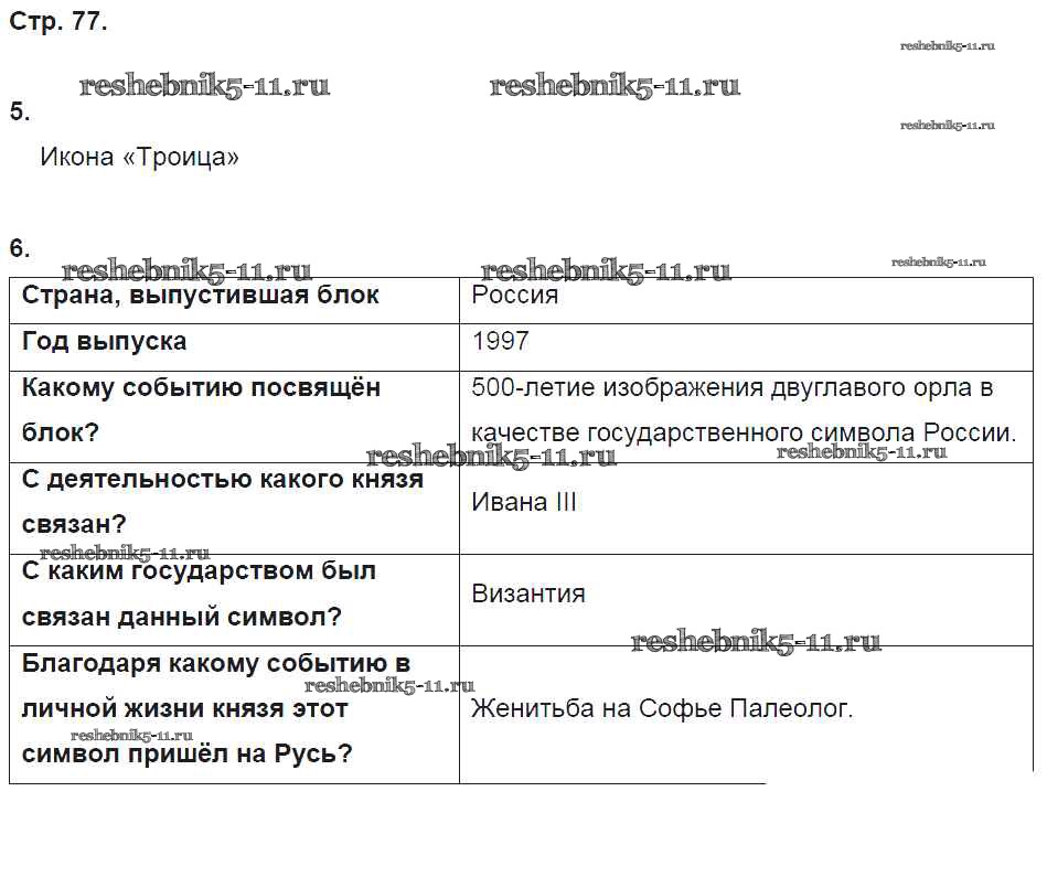 Готовая домашняя работа с ответами по Истории за 6 класс Клоков, Симонова Рабочая тетрадь Вертикаль Дрофа 2018 ФГОС - Страницы тетради 77