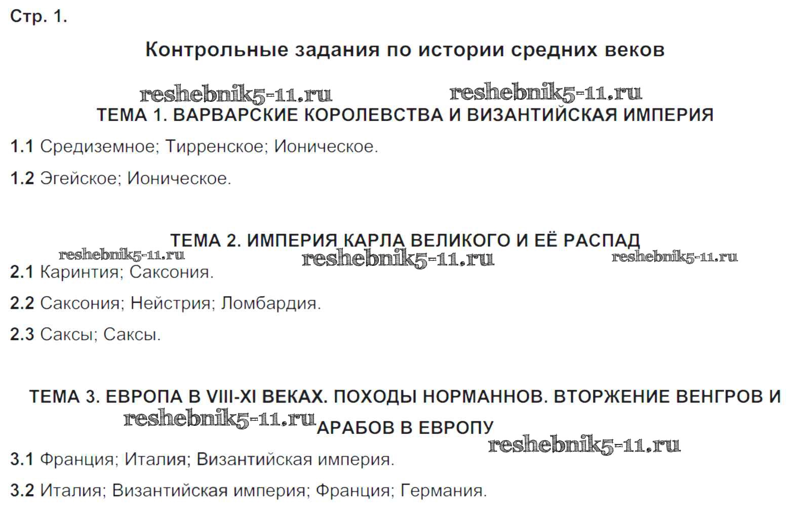 Готовая домашняя работа с ответами по Истории за 6 класс Колпаков, Пономарев Контурные карты Аст/Астрель 2019 ФГОС - Контрольные задания стр. 1