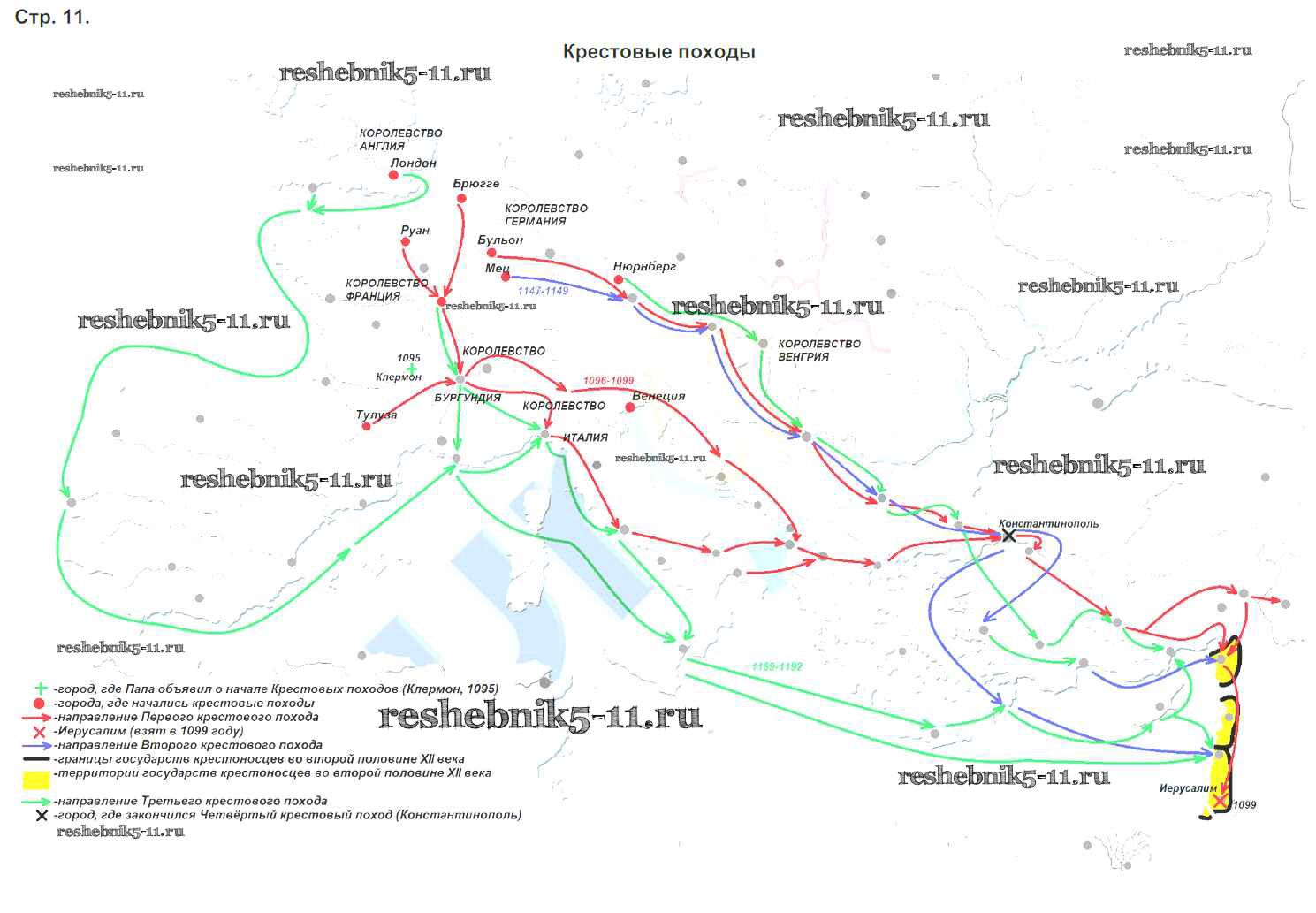 Готовая домашняя работа с ответами по Истории за 6 класс Колпаков, Пономарев Контурные карты Аст/Астрель 2019 ФГОС - Контурные карты стр. 11