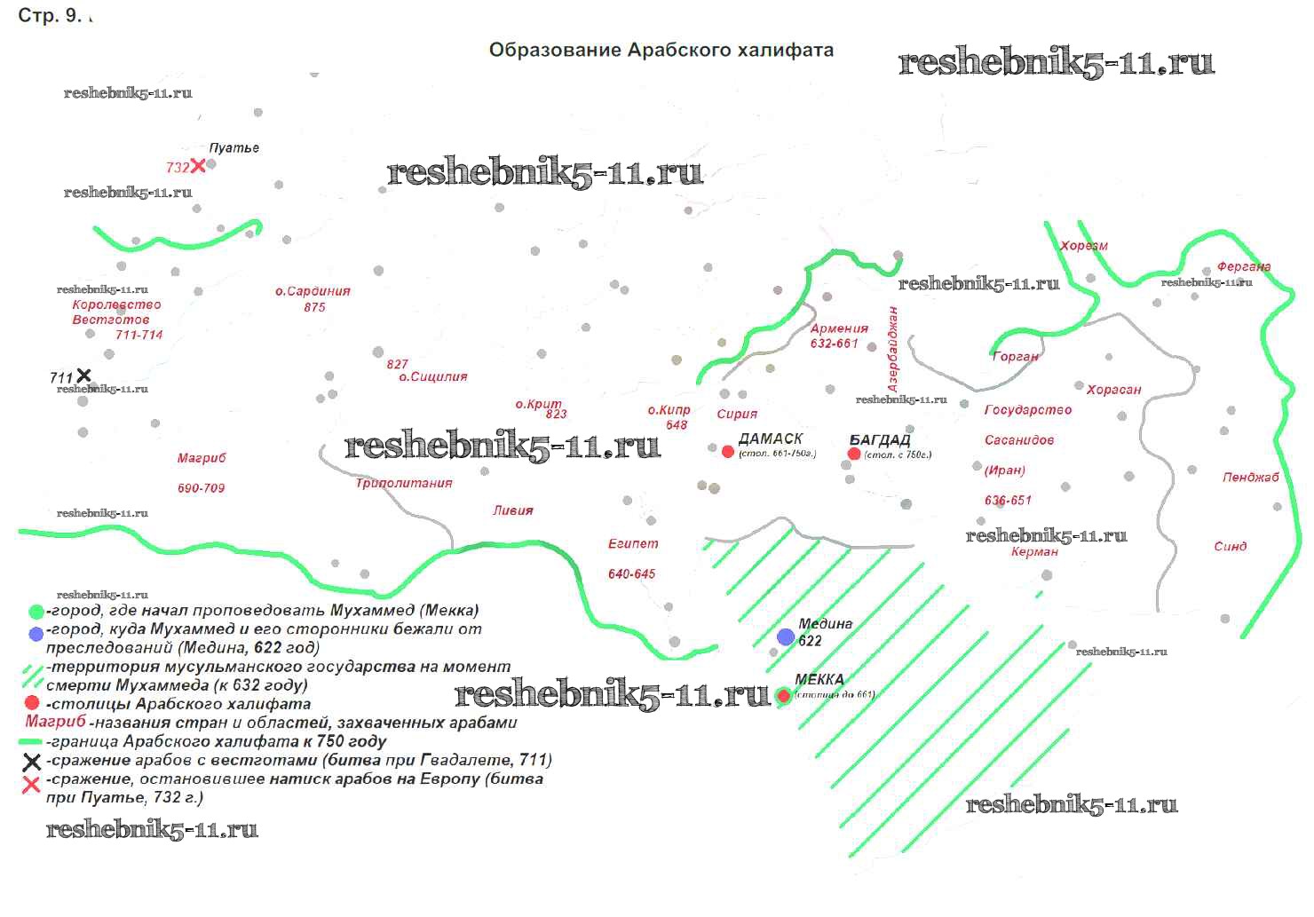Готовая домашняя работа с ответами по Истории за 6 класс Колпаков, Пономарев Контурные карты Аст/Астрель 2019 ФГОС - Контурные карты стр. 9