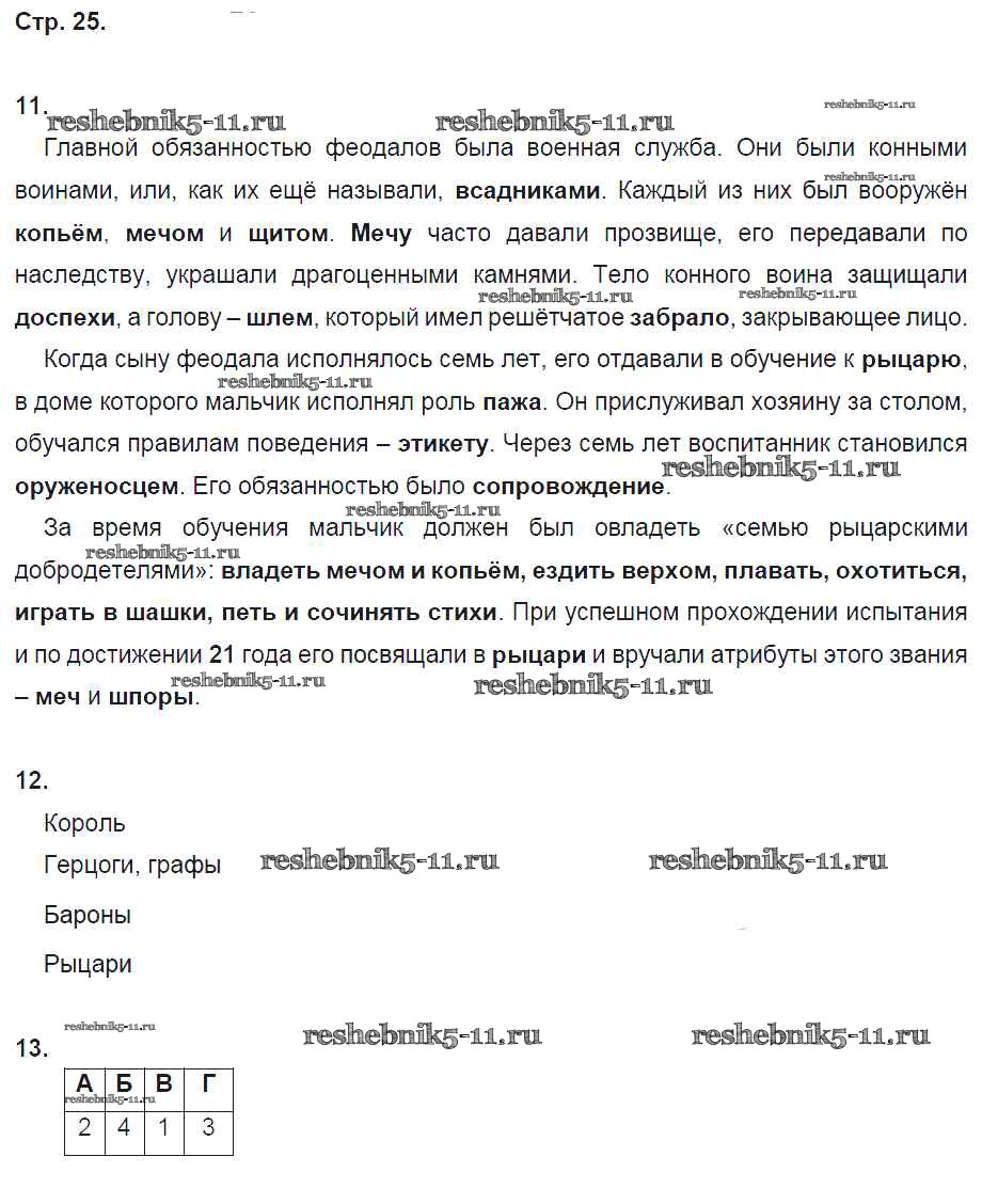 Готовая домашняя работа с ответами по Истории за 6 класс Колпаков, Пономарев Рабочая тетрадь Вертикаль Дрофа 2017 ФГОС - Страницы 25