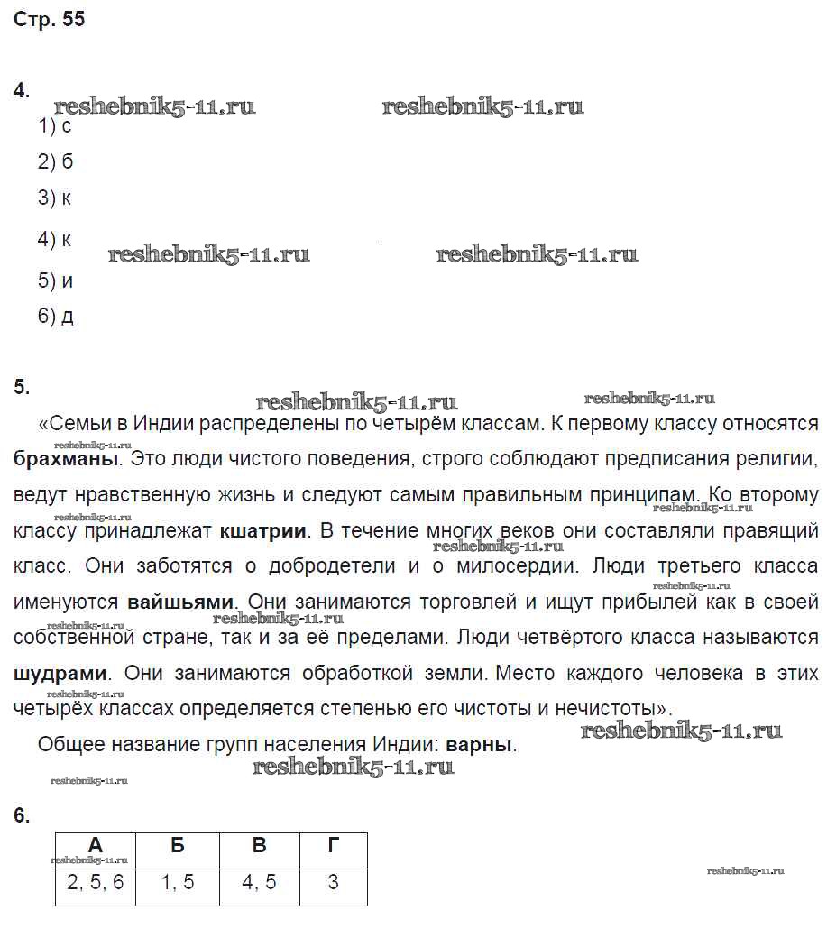 Готовая домашняя работа с ответами по Истории за 6 класс Колпаков, Пономарев Рабочая тетрадь Вертикаль Дрофа 2017 ФГОС - Страницы 55