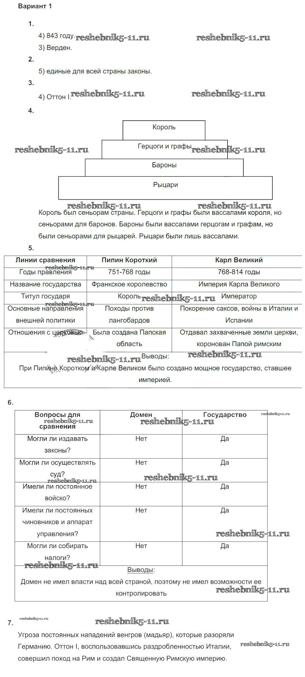 Готовая домашняя работа с ответами по Истории за 6 класс Крючкова Проверочные и контрольные работы Просвещение 2014 ФГОС - ПР №2 вариант-1