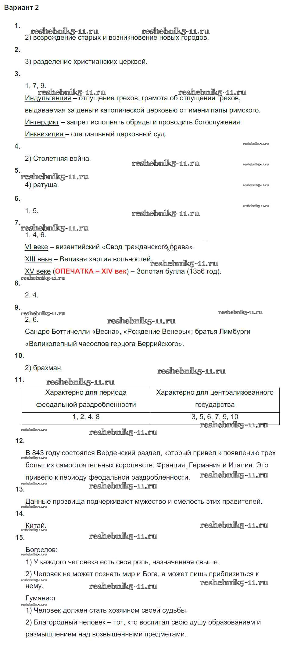 Готовая домашняя работа с ответами по Истории за 6 класс Крючкова Проверочные и контрольные работы Просвещение 2014 ФГОС - Итоговая КР по курсу История Средних веков вариант-2