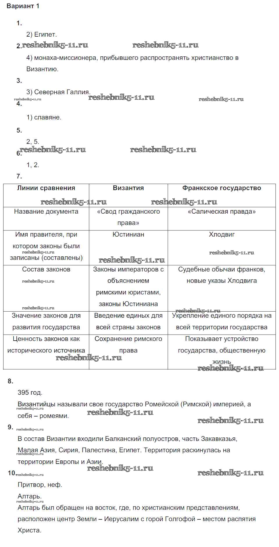 Готовая домашняя работа с ответами по Истории за 6 класс Крючкова Проверочные и контрольные работы Просвещение 2014 ФГОС - ПР №1 вариант-1