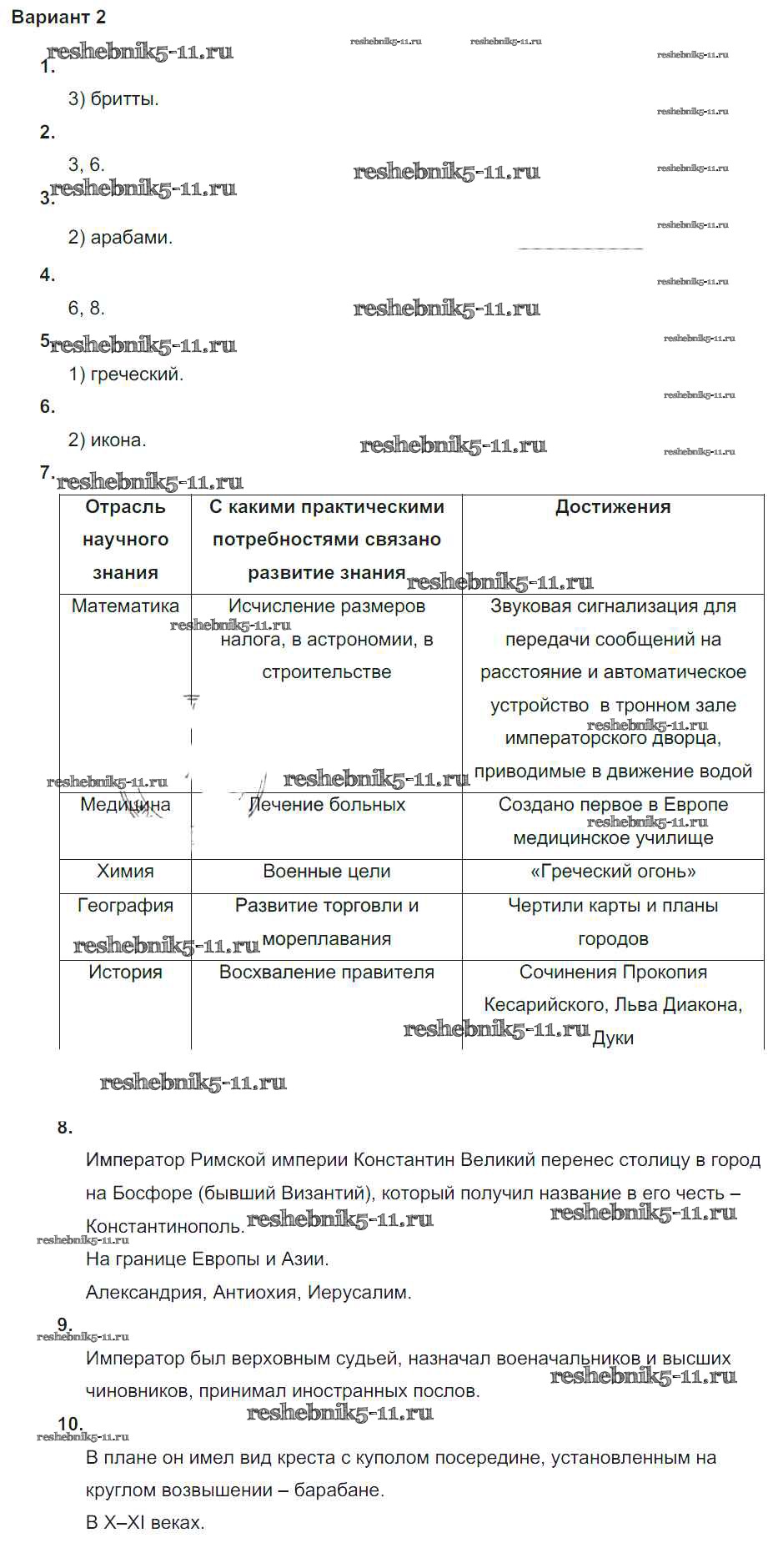 Готовая домашняя работа с ответами по Истории за 6 класс Крючкова Проверочные и контрольные работы Просвещение 2014 ФГОС - ПР №1 вариант-2