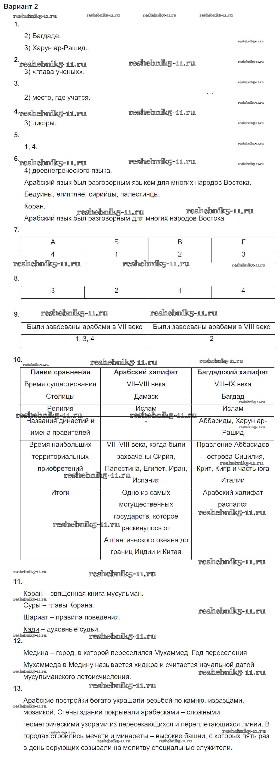 Готовая домашняя работа с ответами по Истории за 6 класс Крючкова Проверочные и контрольные работы Просвещение 2014 ФГОС - Итоговая КР вариант-2