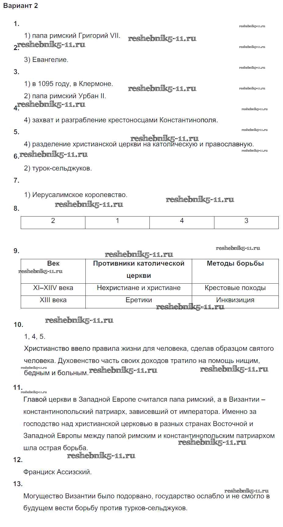 Готовая домашняя работа с ответами по Истории за 6 класс Крючкова Проверочные и контрольные работы Просвещение 2014 ФГОС - Итоговая КР вариант-2