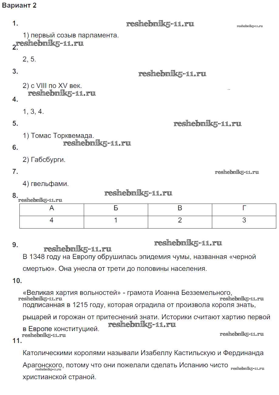 Готовая домашняя работа с ответами по Истории за 6 класс Крючкова Проверочные и контрольные работы Просвещение 2014 ФГОС - Итоговая КР вариант-2