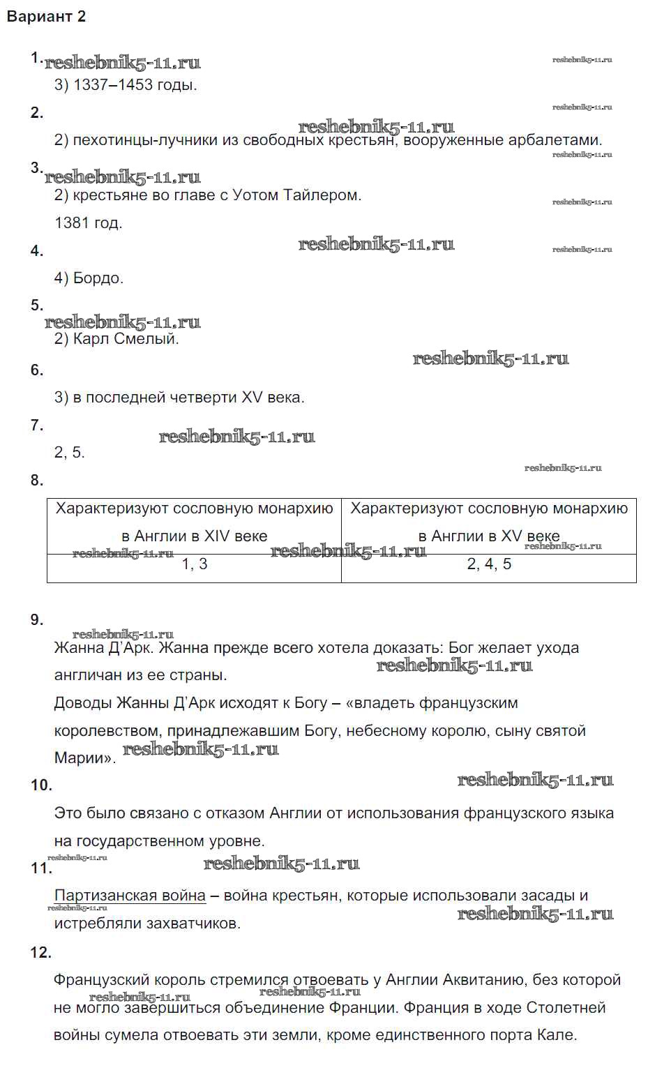 Готовая домашняя работа с ответами по Истории за 6 класс Крючкова Проверочные и контрольные работы Просвещение 2014 ФГОС - ПР №2 вариант-2