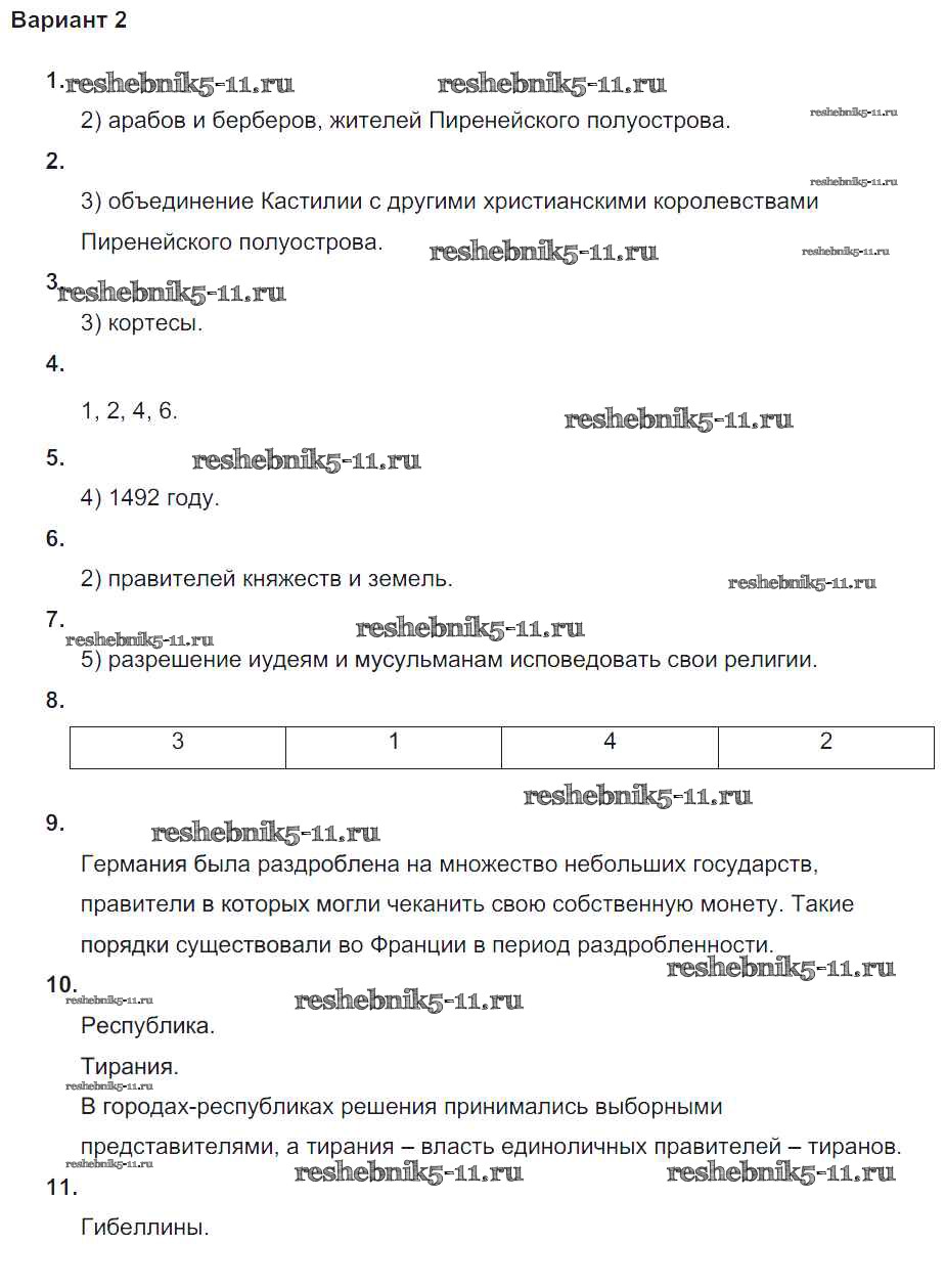Готовая домашняя работа с ответами по Истории за 6 класс Крючкова Проверочные и контрольные работы Просвещение 2014 ФГОС - ПР №3 вариант-2