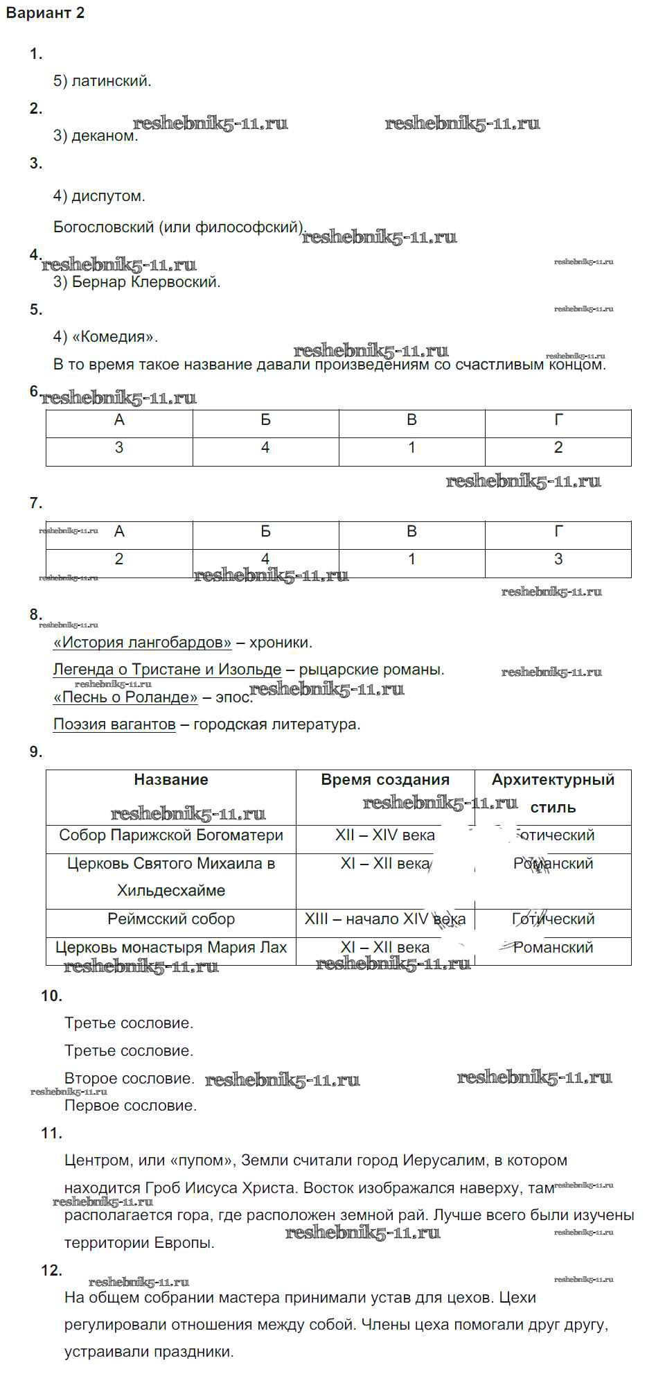 Готовая домашняя работа с ответами по Истории за 6 класс Крючкова Проверочные и контрольные работы Просвещение 2014 ФГОС - ПР №1 вариант-2