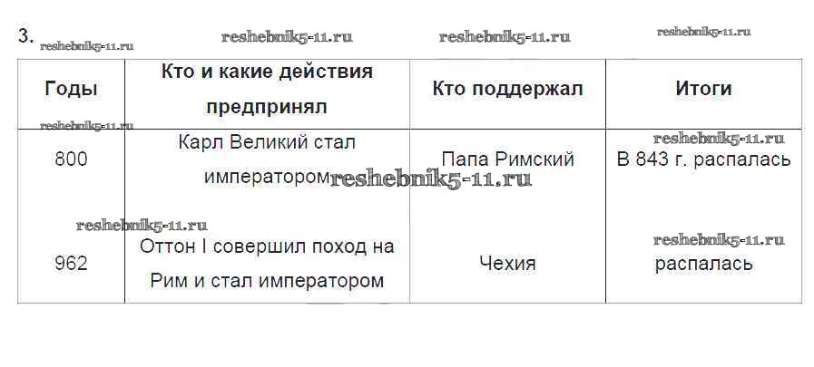 Готовая домашняя работа с ответами по Истории за 6 класс Крючкова Рабочая тетрадь Просвещение 2015 ФГОС - § 4 «Феодальная раздробленность Западной Европы в IX—XI веках» 3