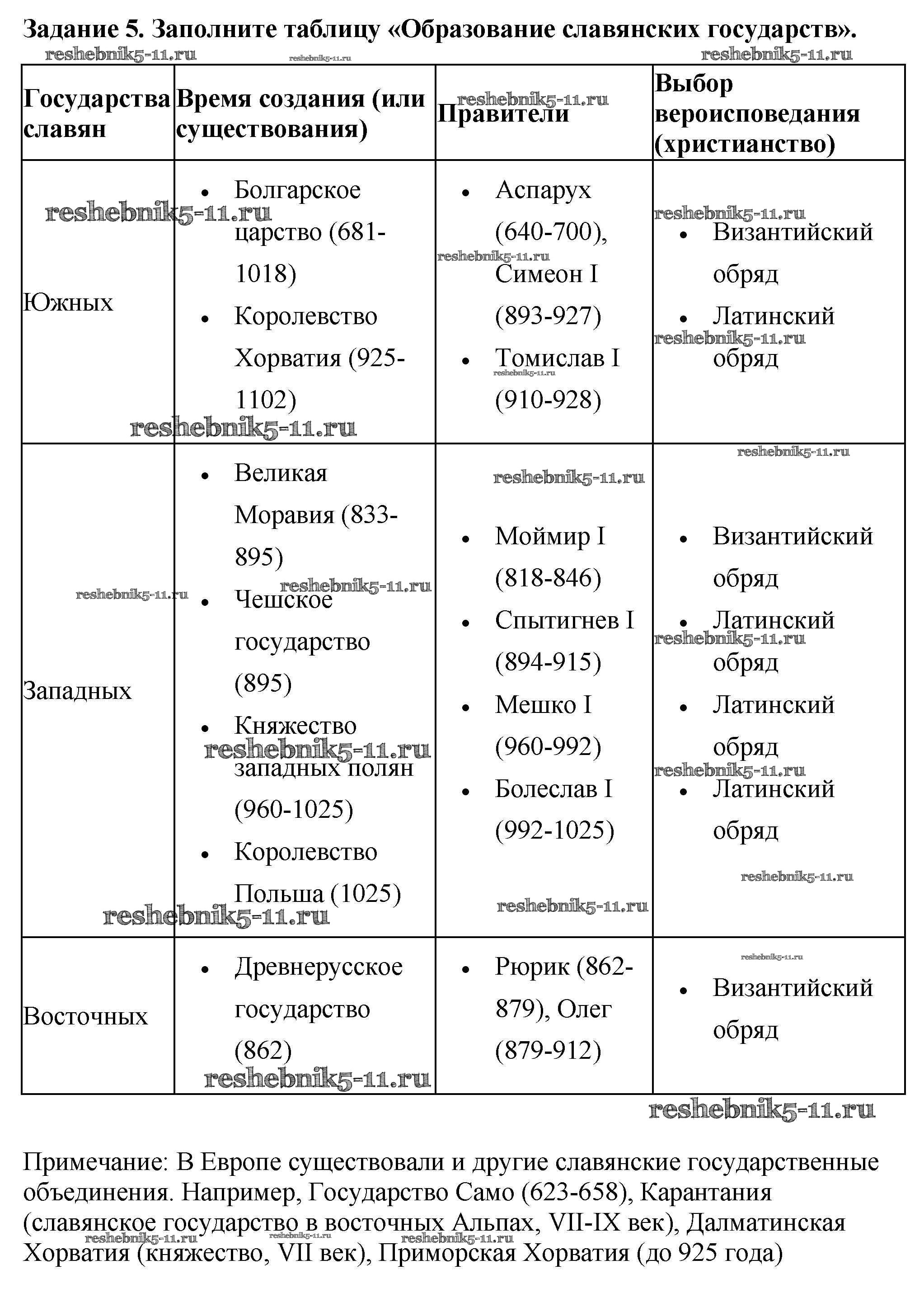 Готовая домашняя работа с ответами по Истории за 6 класс Крючкова Рабочая тетрадь Просвещение 2015 ФГОС - § 8 «Образование славянских государств» 5