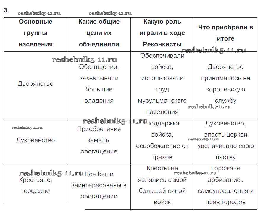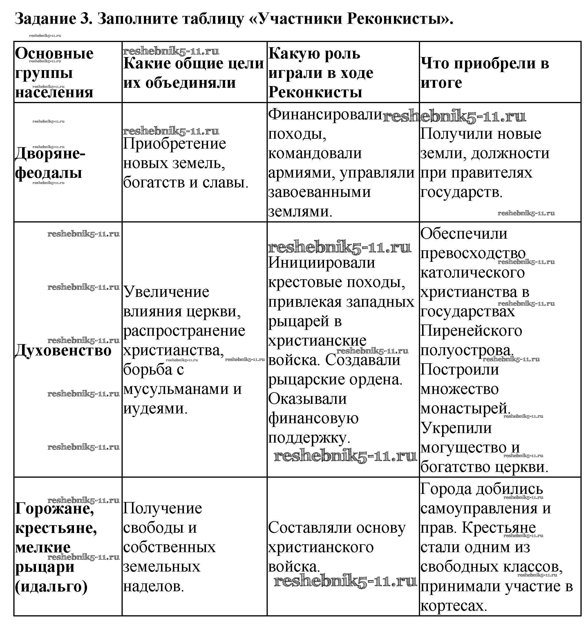 Готовая домашняя работа с ответами по Истории за 6 класс Крючкова Рабочая тетрадь Просвещение 2015 ФГОС - § 22 «Реконкиста и образование централизованных государств на Пиренейском полуострове» 3