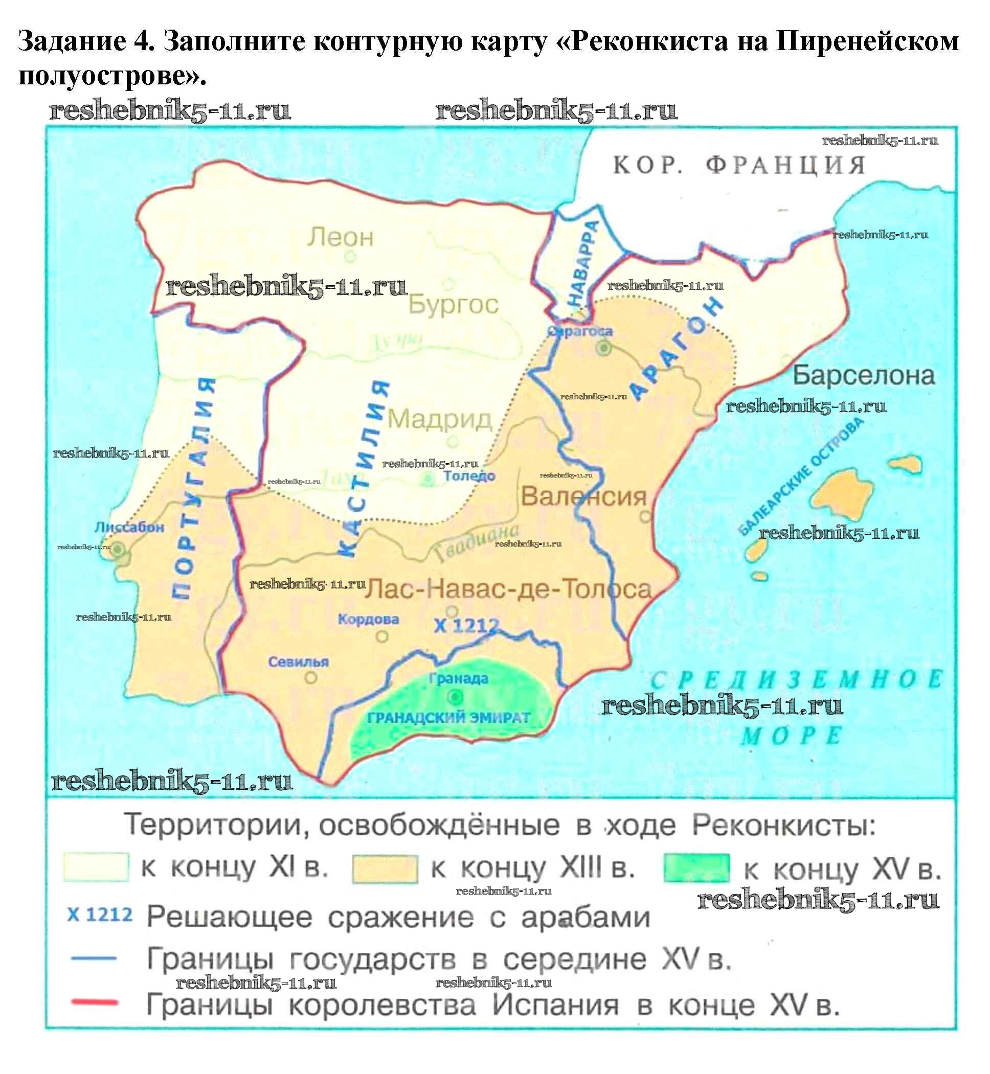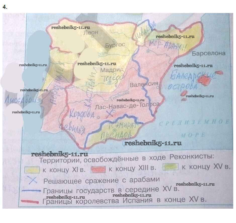 Готовая домашняя работа с ответами по Истории за 6 класс Крючкова Рабочая тетрадь Просвещение 2015 ФГОС - § 22 «Реконкиста и образование централизованных государств на Пиренейском полуострове» 4