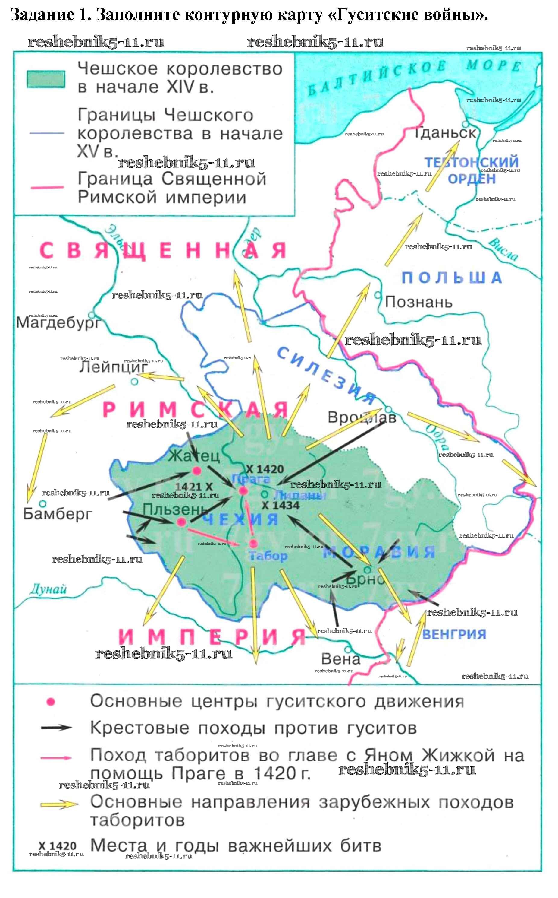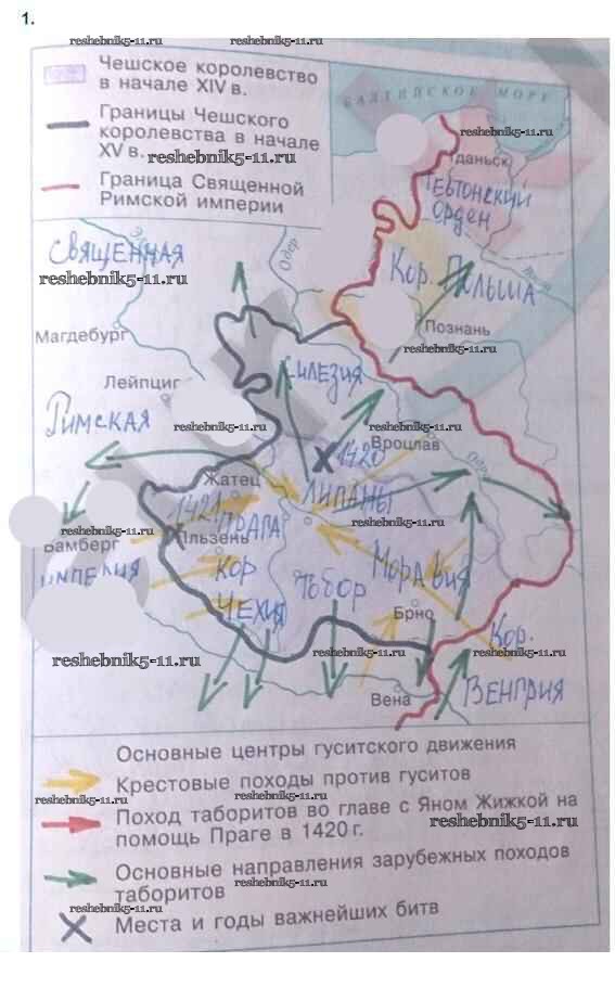Готовая домашняя работа с ответами по Истории за 6 класс Крючкова Рабочая тетрадь Просвещение 2015 ФГОС - § 24 «Гуситское движение в Чехии» 1