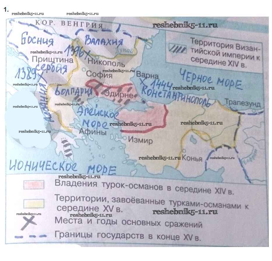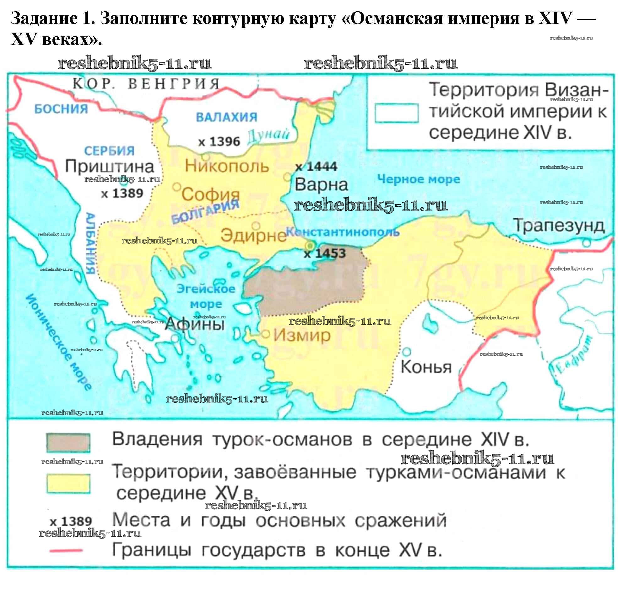 Готовая домашняя работа с ответами по Истории за 6 класс Крючкова Рабочая тетрадь Просвещение 2015 ФГОС - § 25 «Завоевание турками-османами Балканского полуострова» 1