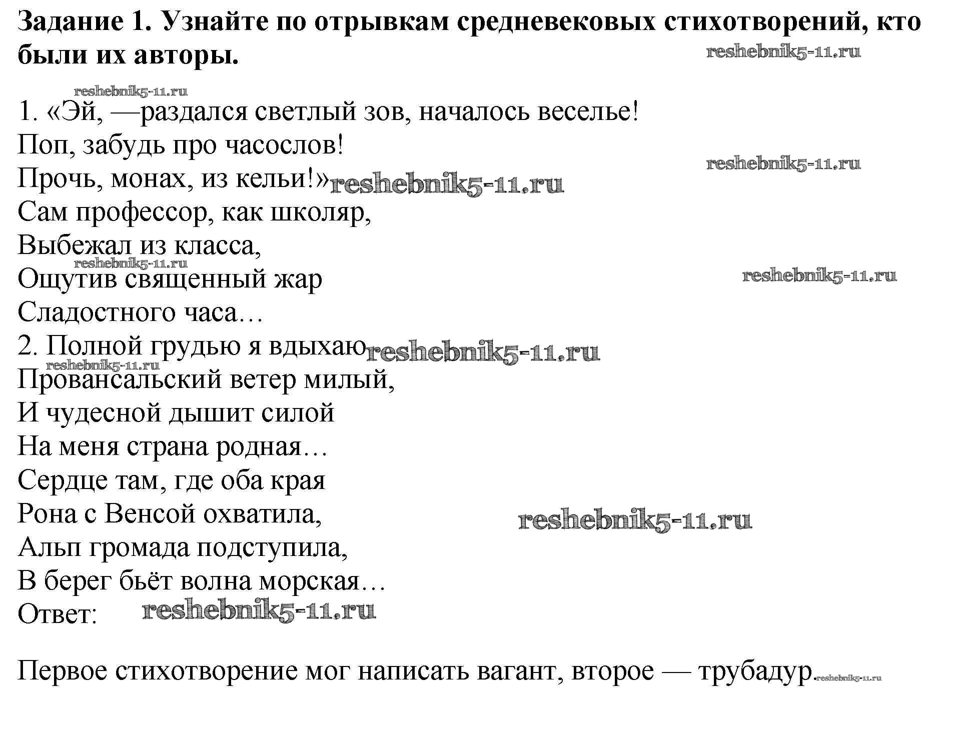 Готовая домашняя работа с ответами по Истории за 6 класс Крючкова Рабочая тетрадь Просвещение 2015 ФГОС - § 27 «Средневековая литература» 1