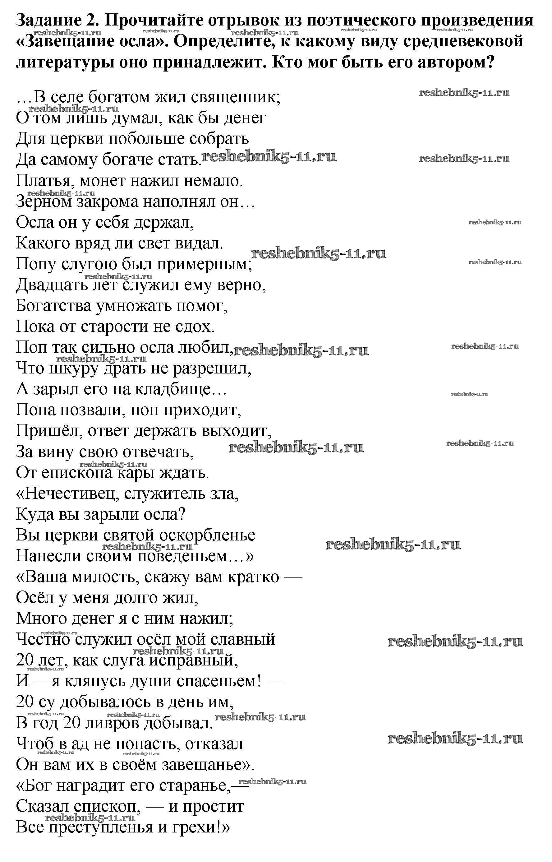 Готовая домашняя работа с ответами по Истории за 6 класс Крючкова Рабочая тетрадь Просвещение 2015 ФГОС - § 27 «Средневековая литература» 2