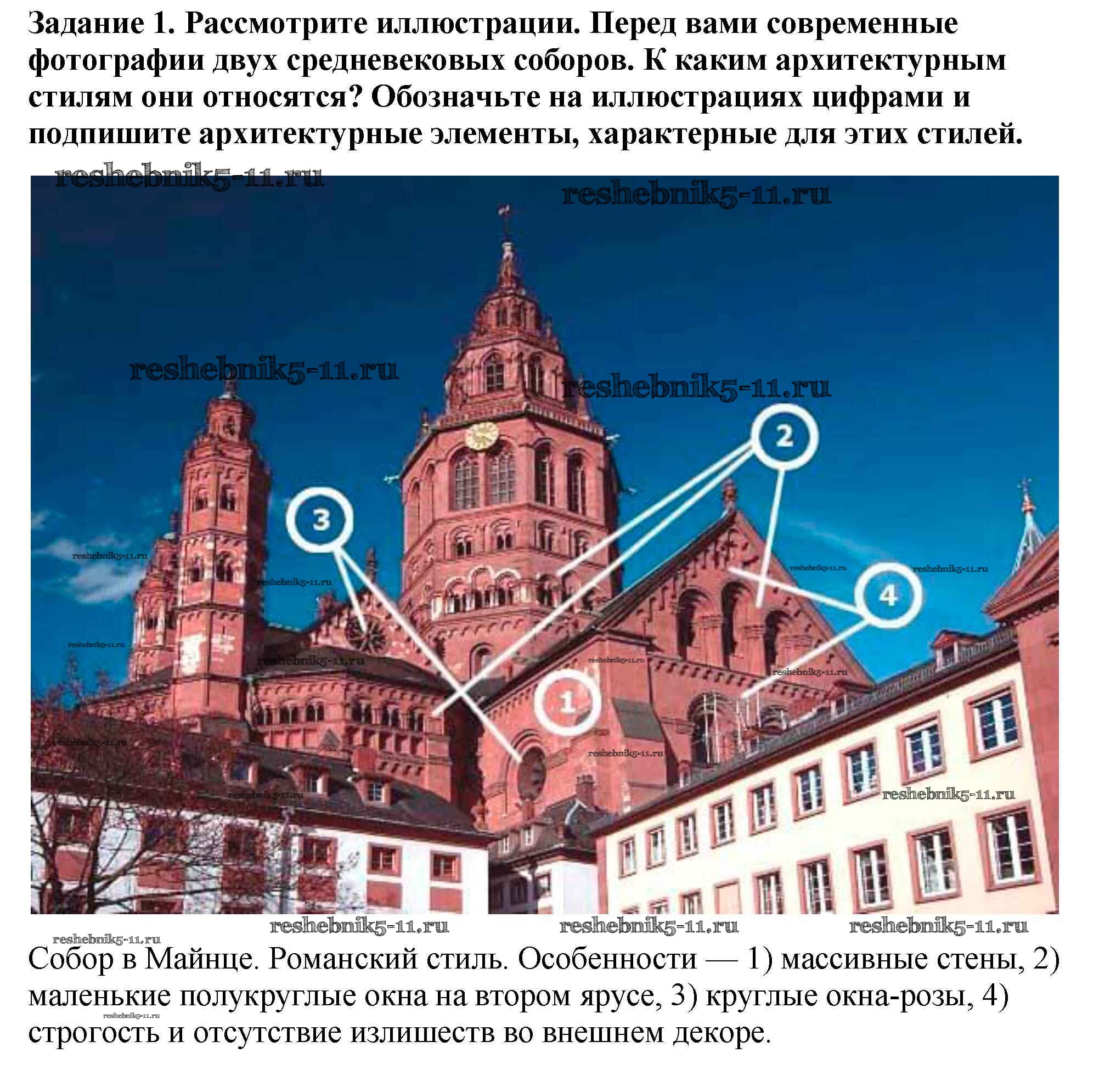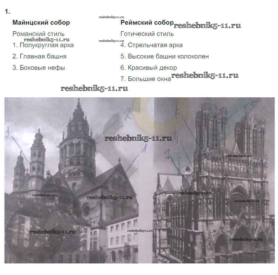 Готовая домашняя работа с ответами по Истории за 6 класс Крючкова Рабочая тетрадь Просвещение 2015 ФГОС - § 28 «Средневековое искусство» 1