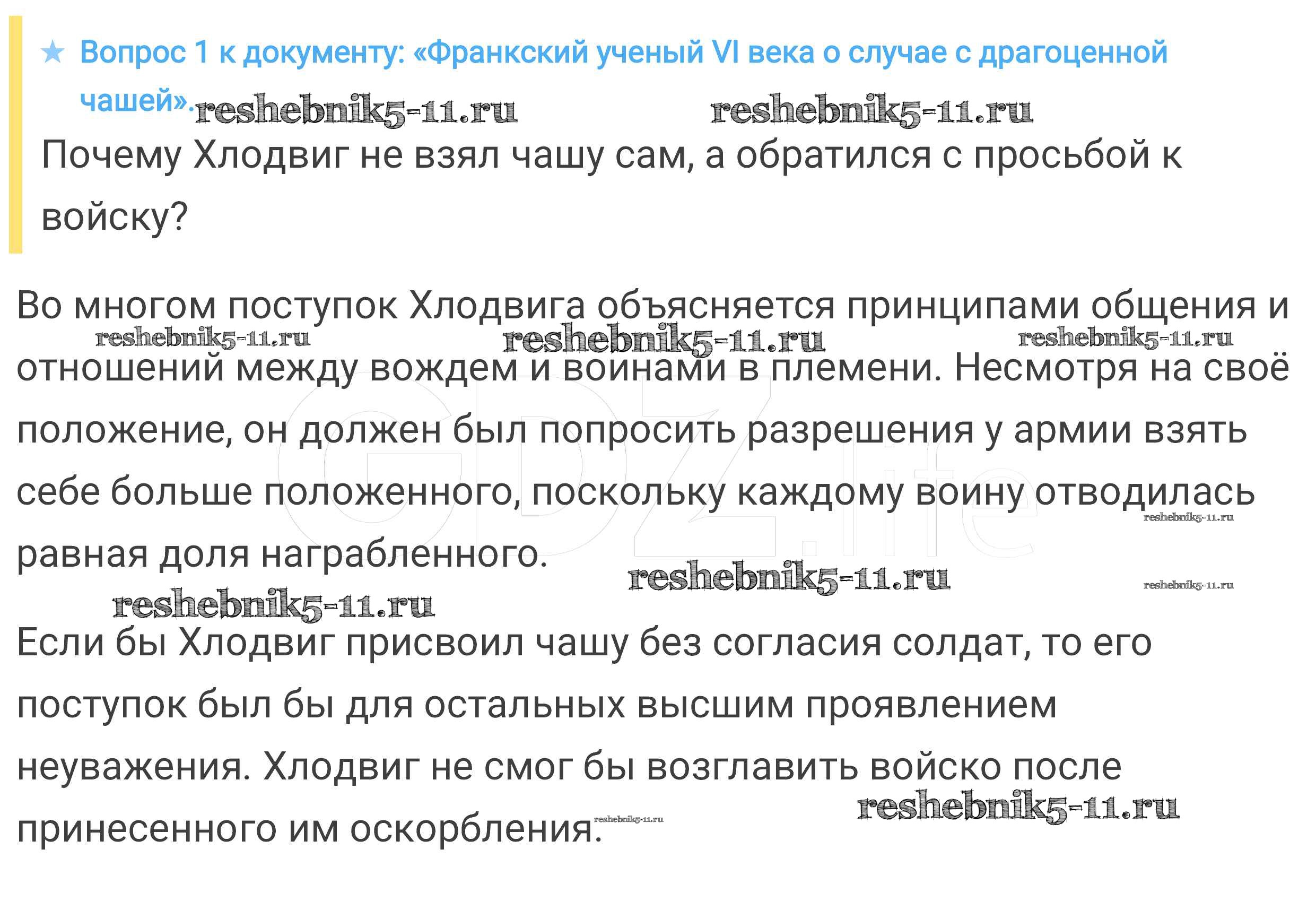 Готовая домашняя работа с ответами по Истории за 6 класс Агибалова, Донской Учебник Просвещение 2014 ФГОС - Вопросы к документу 1