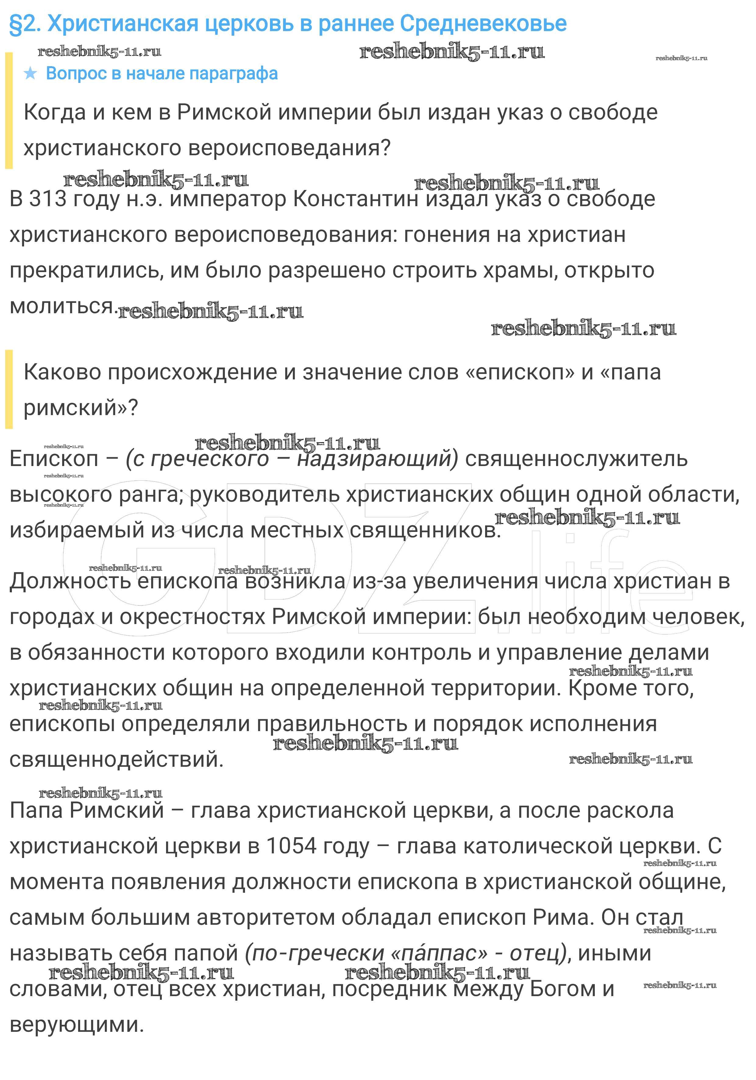 Готовая домашняя работа с ответами по Истории за 6 класс Агибалова, Донской Учебник Просвещение 2014 ФГОС - Вопросы в начале параграфа 1