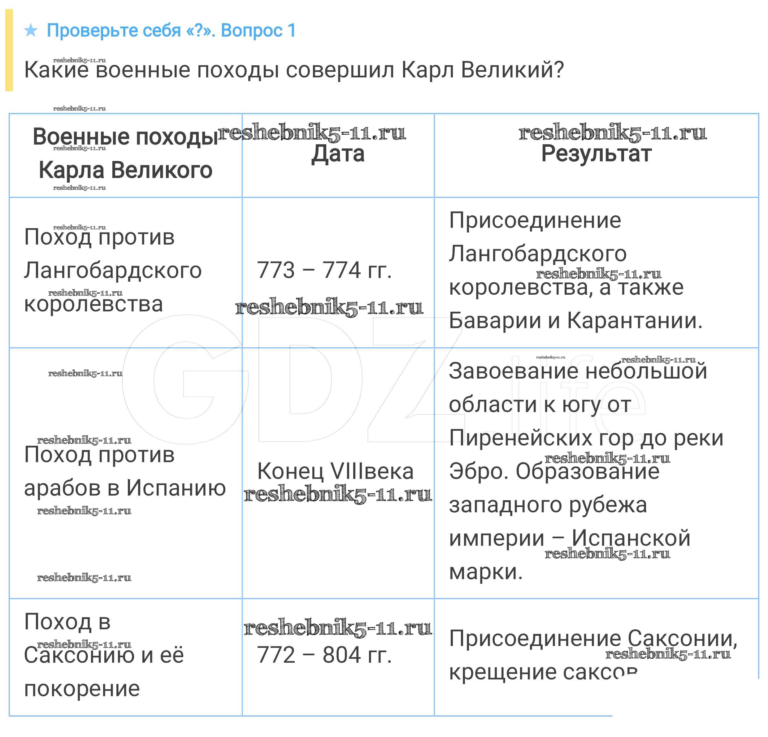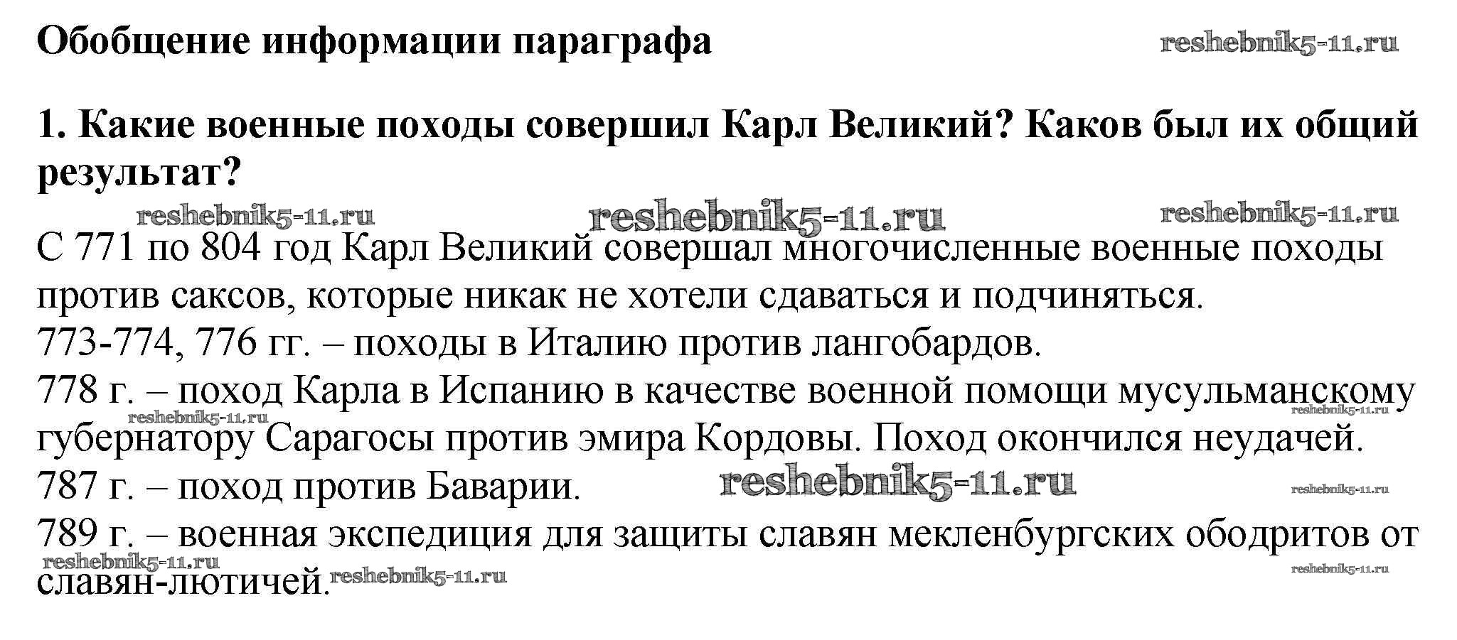 Готовая домашняя работа с ответами по Истории за 6 класс Агибалова, Донской Учебник Просвещение 2014 ФГОС - Проверьте себя 1