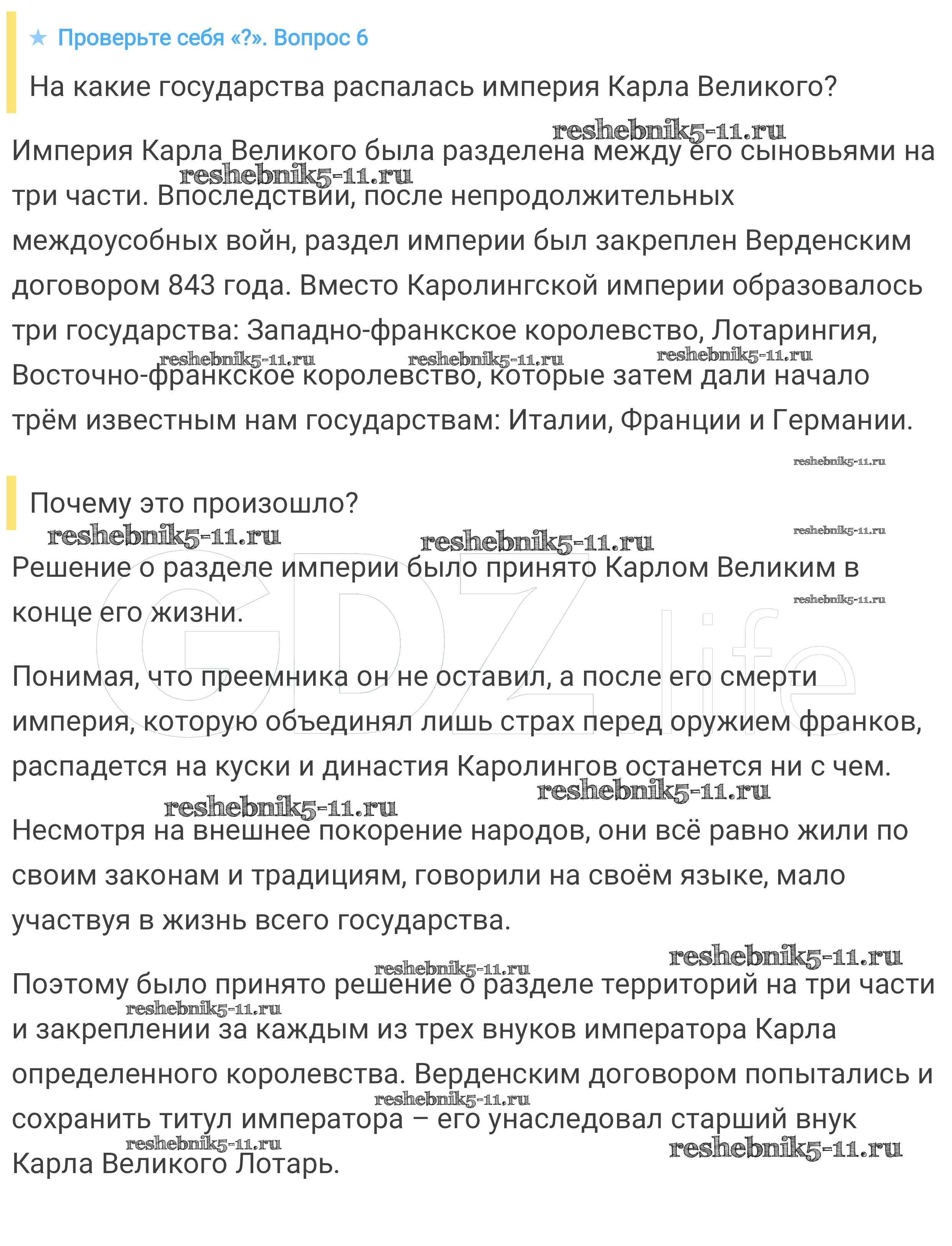 Готовая домашняя работа с ответами по Истории за 6 класс Агибалова, Донской Учебник Просвещение 2014 ФГОС - Проверьте себя 6