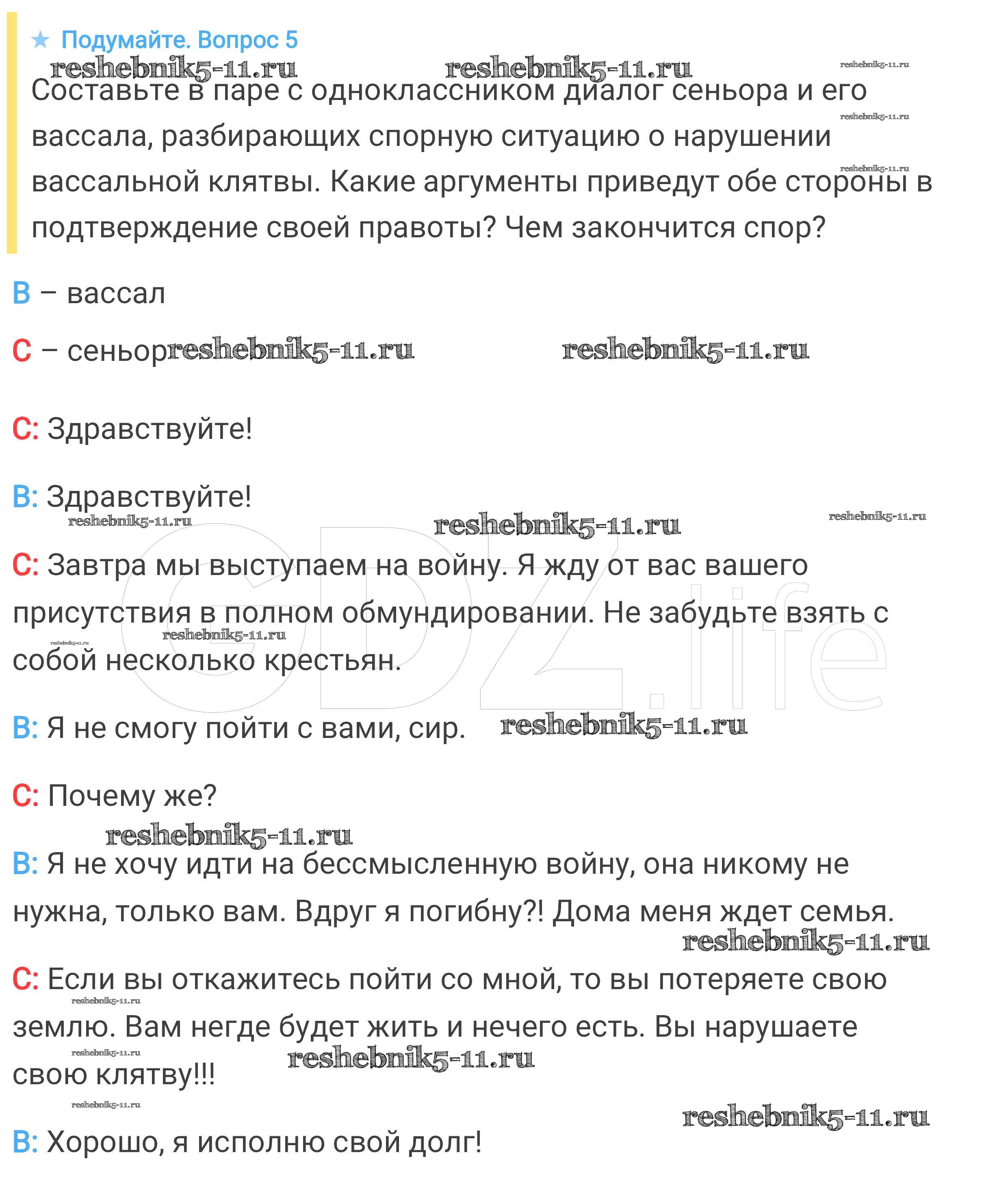 История за 6 класс Агибалова Учебник Просвещение подумайте 5