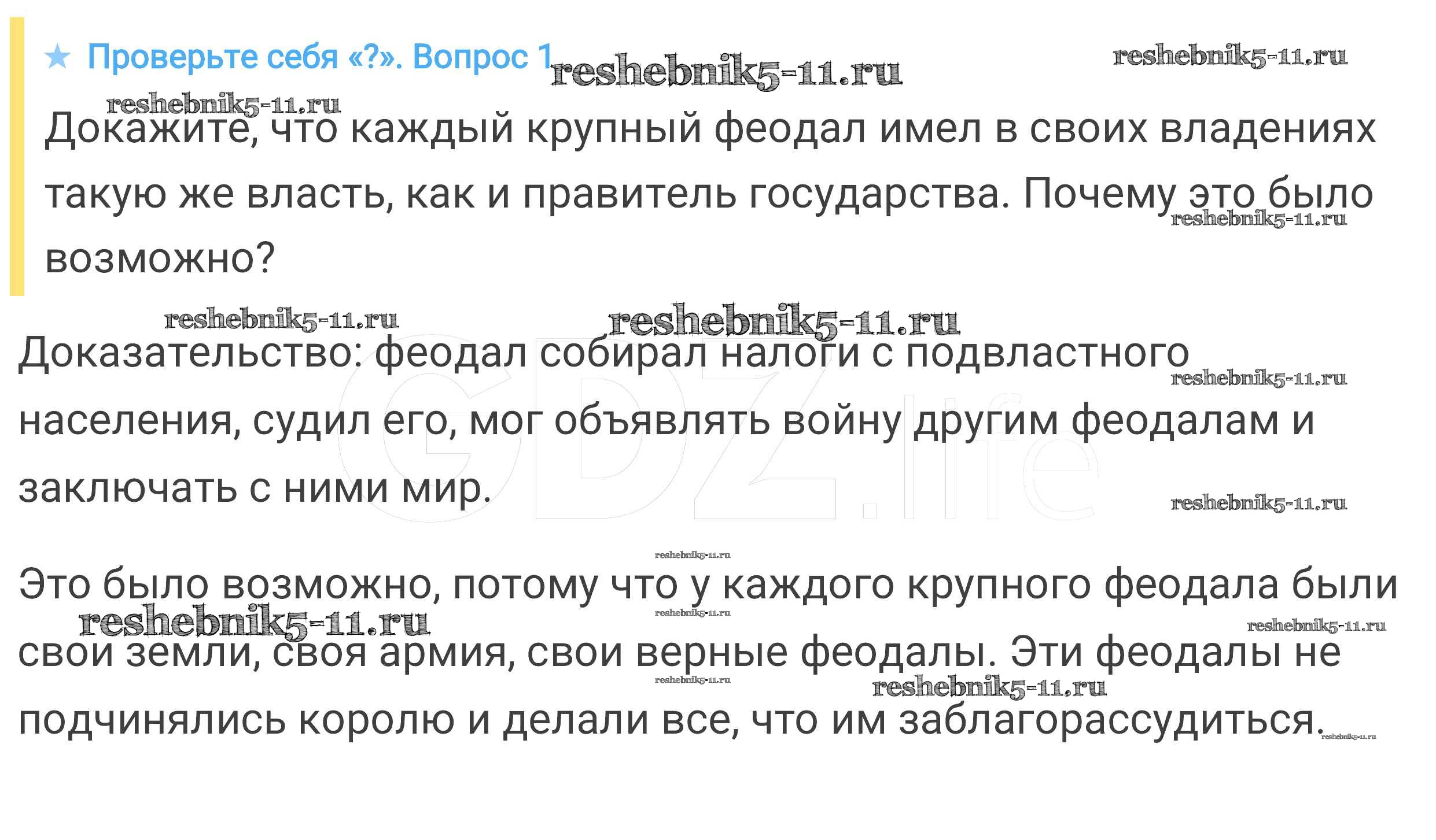 Готовая домашняя работа с ответами по Истории за 6 класс Агибалова, Донской Учебник Просвещение 2014 ФГОС - Проверьте себя 1