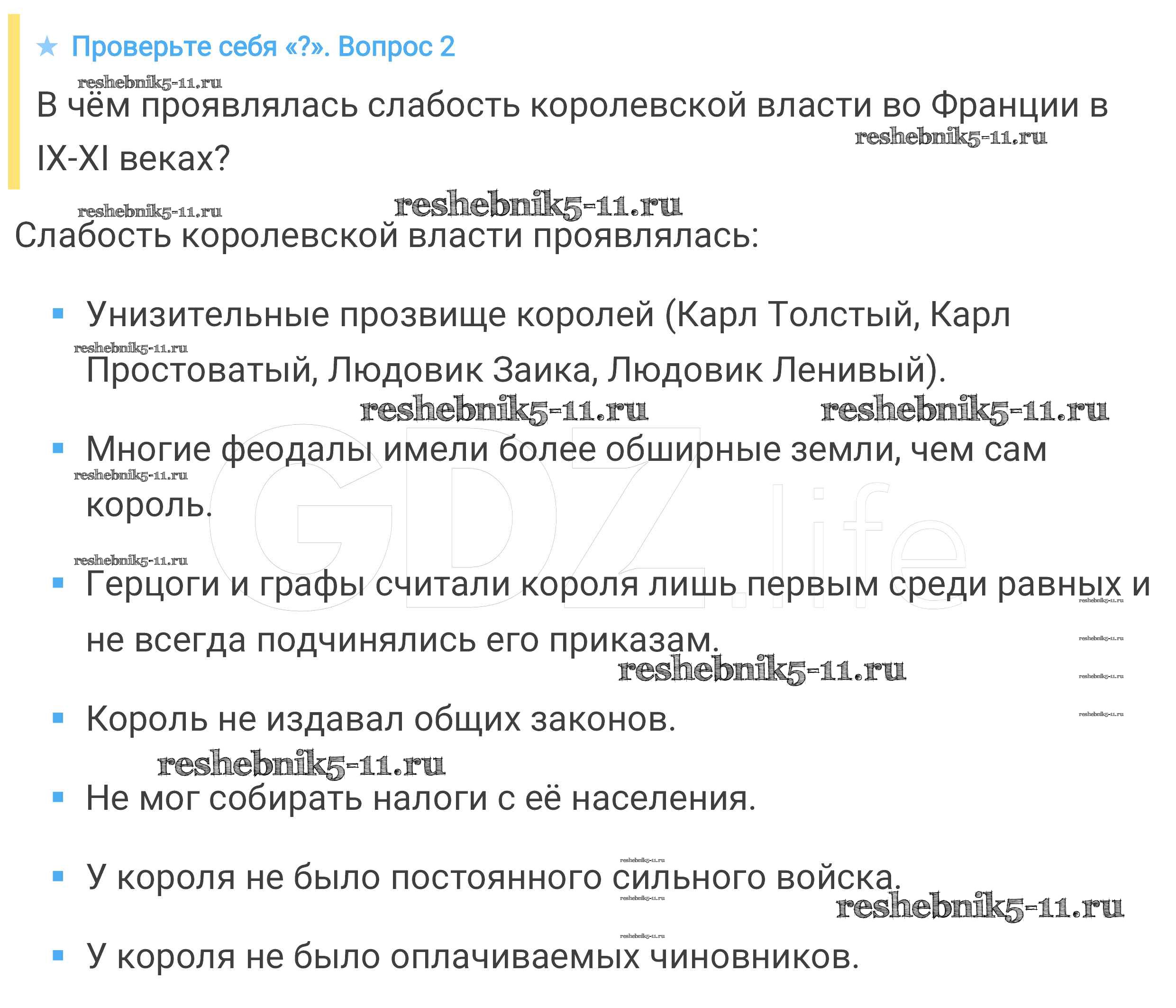 История за 6 класс Агибалова Учебник Просвещение проверьте себя 2