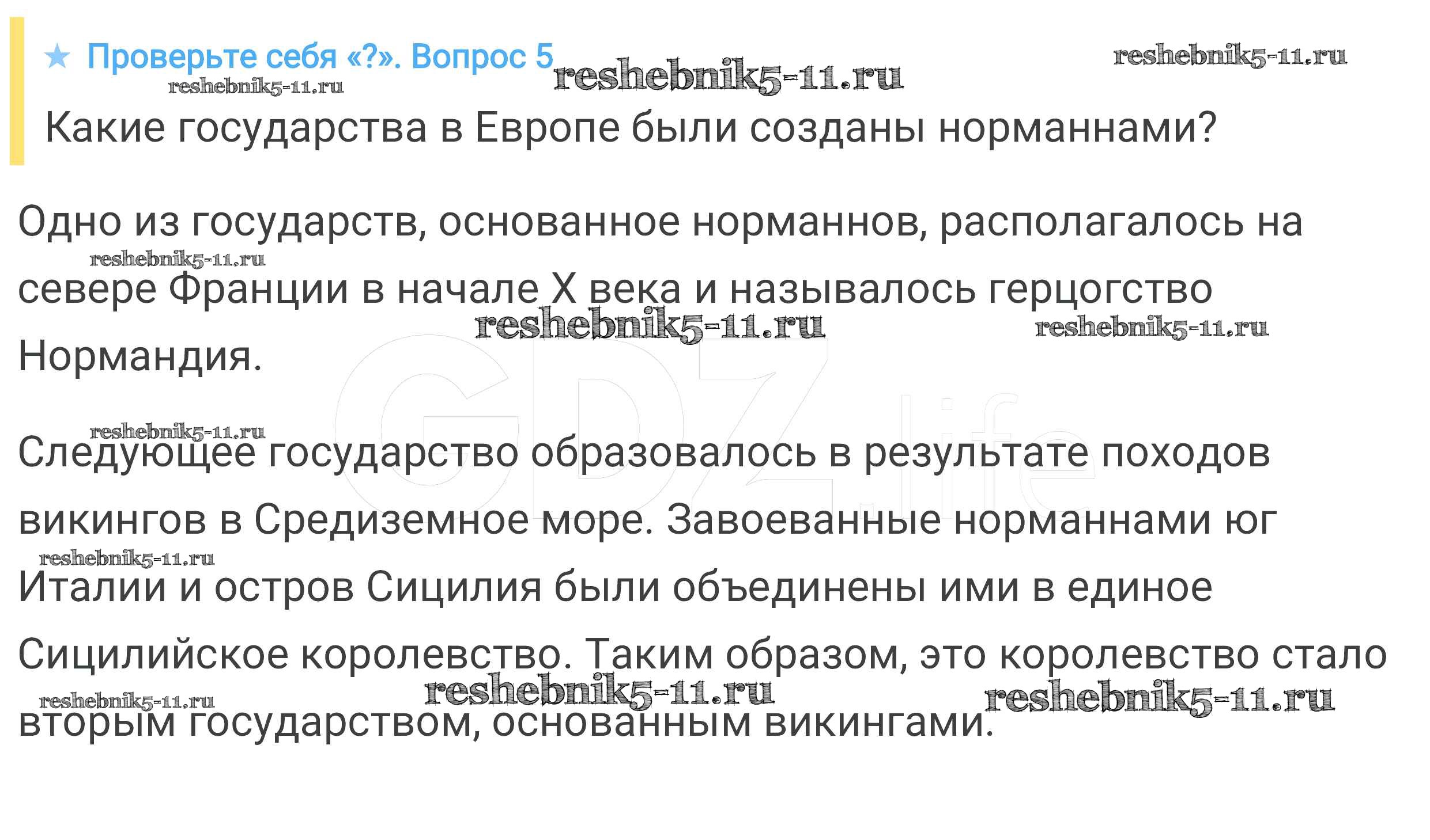 История за 6 класс Агибалова Учебник Просвещение проверьте себя 5