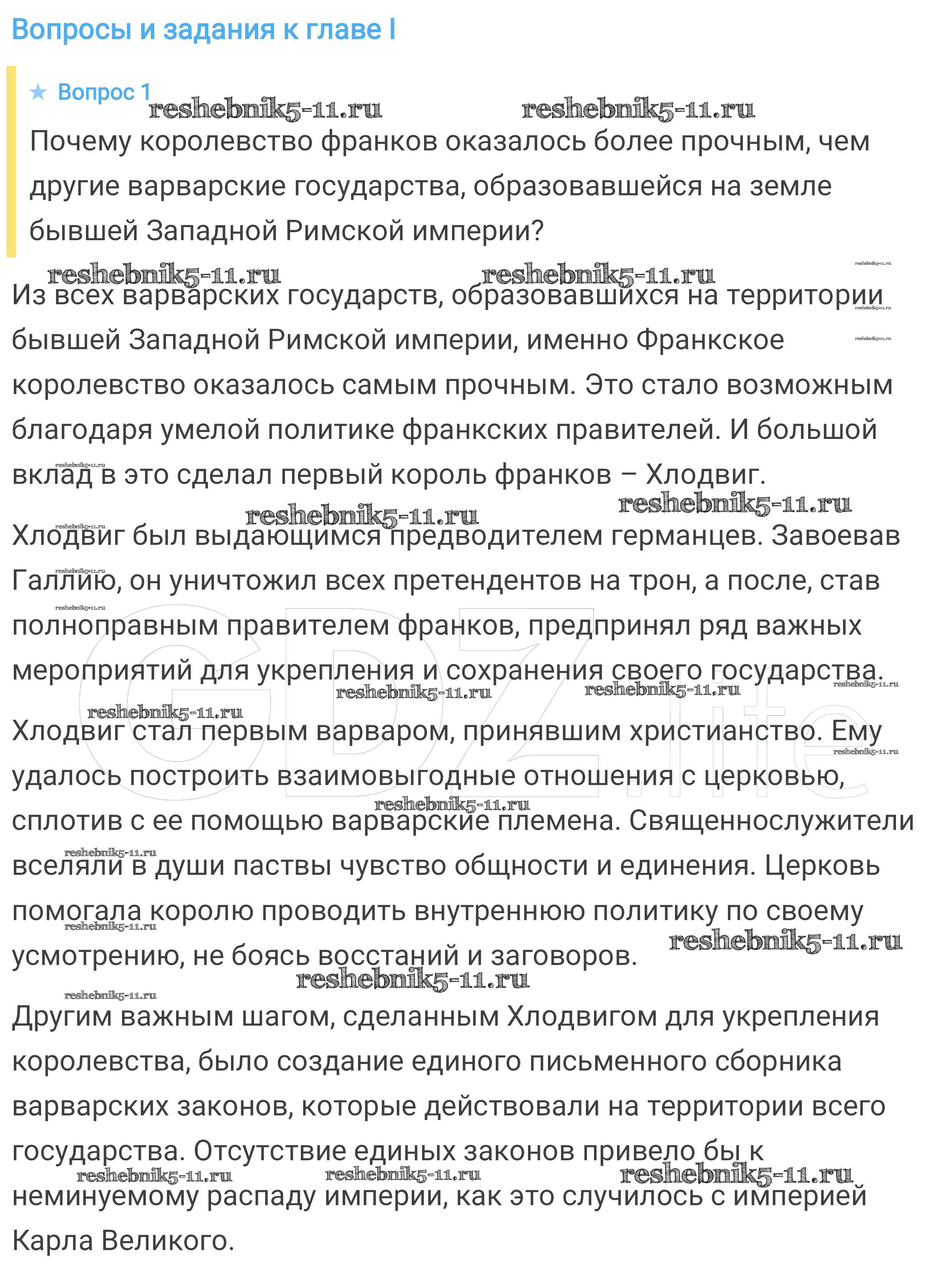 Готовая домашняя работа с ответами по Истории за 6 класс Агибалова, Донской Учебник Просвещение 2014 ФГОС - Вопросы и задания к главе 1