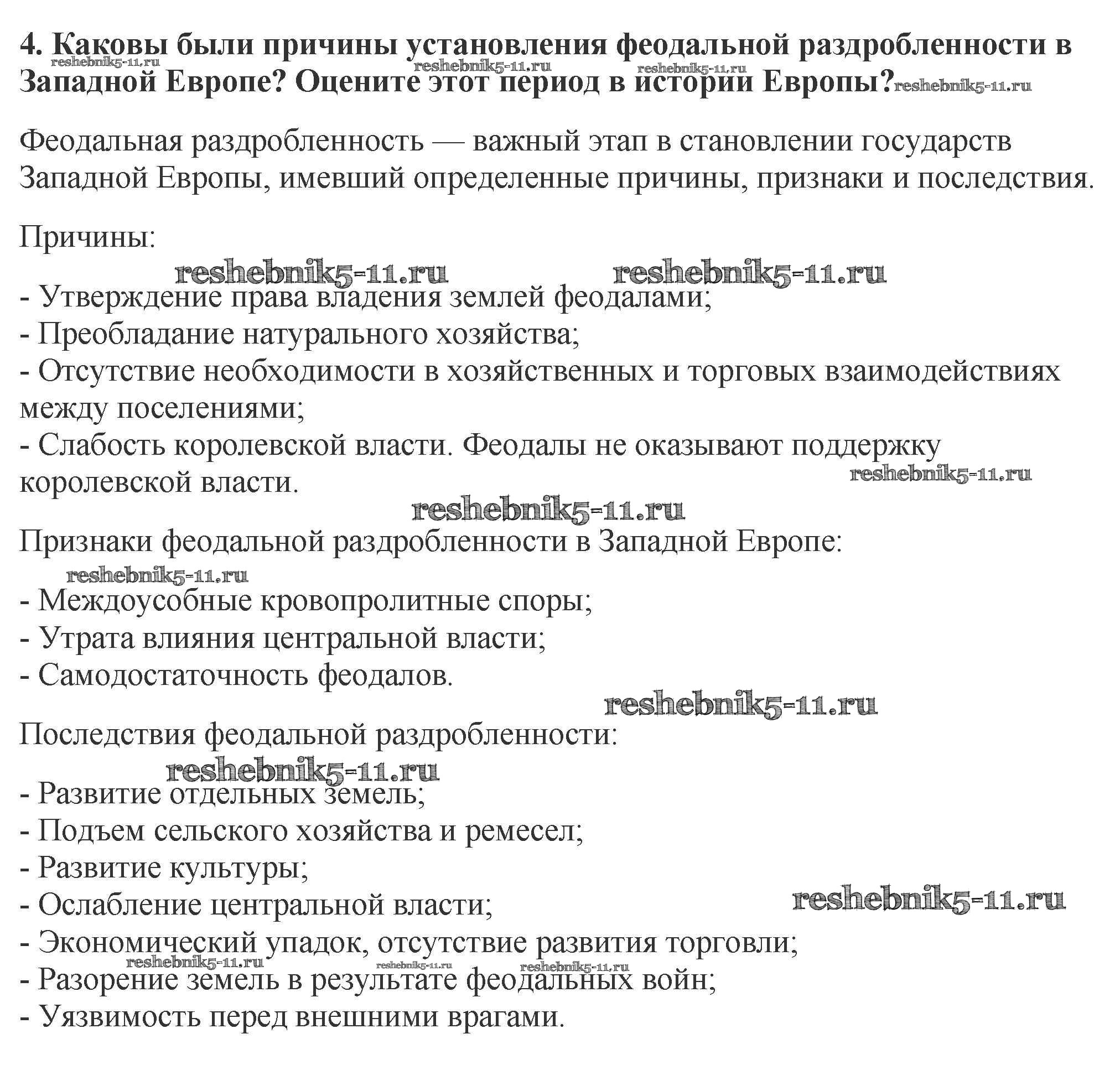 Готовая домашняя работа с ответами по Истории за 6 класс Агибалова, Донской Учебник Просвещение 2014 ФГОС - Вопросы и задания к главе 4