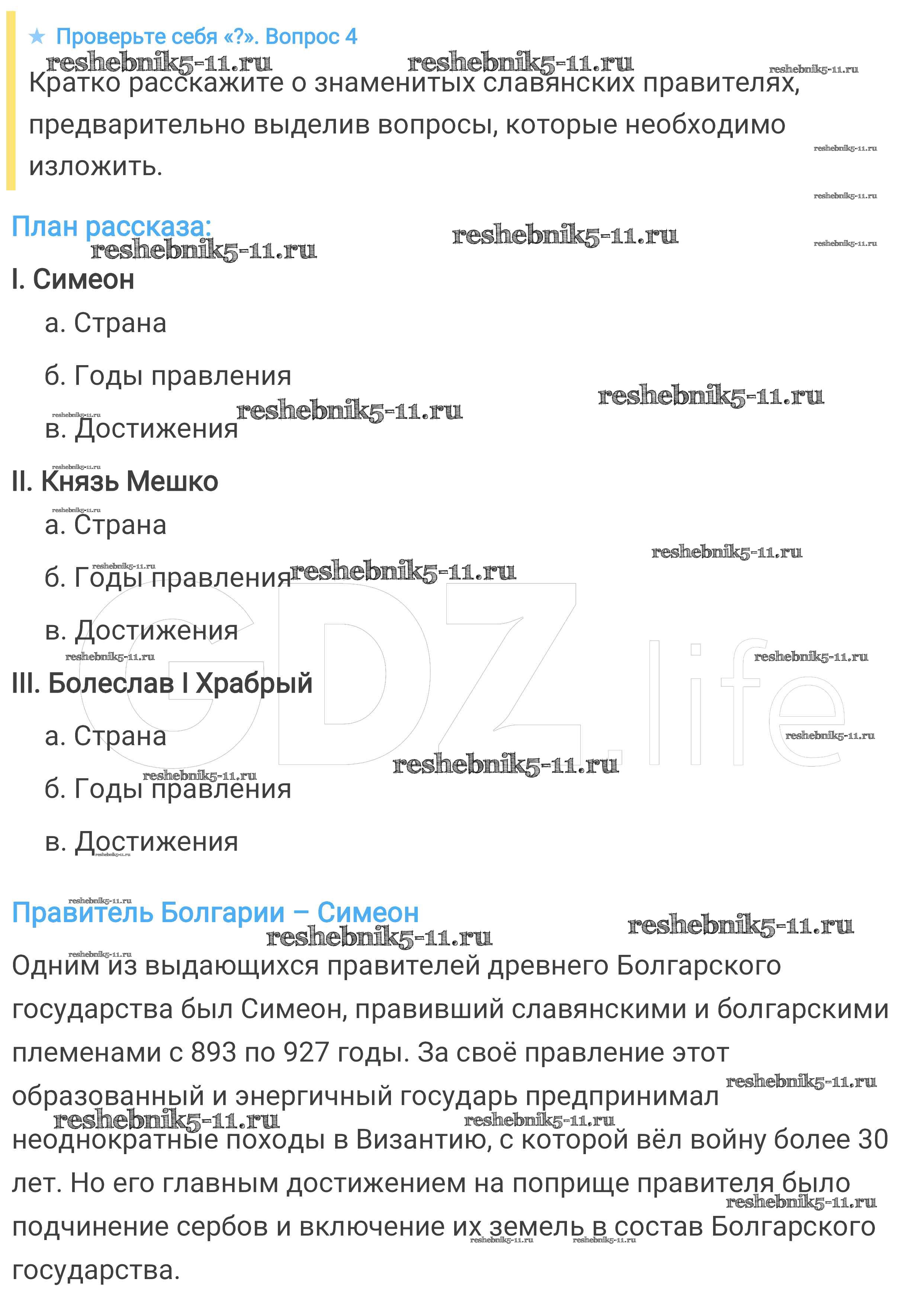 История за 6 класс Агибалова Учебник Просвещение проверьте себя 4