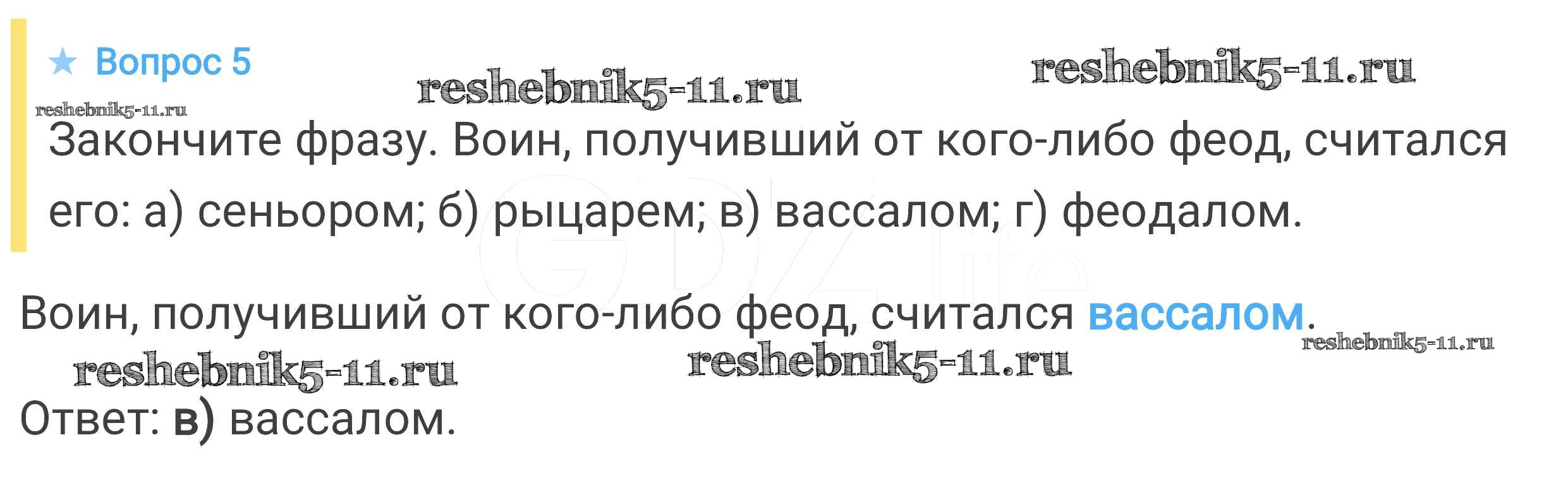 Готовая домашняя работа с ответами по Истории за 6 класс Агибалова, Донской Учебник Просвещение 2014 ФГОС - Вопросы и задания к главе 5