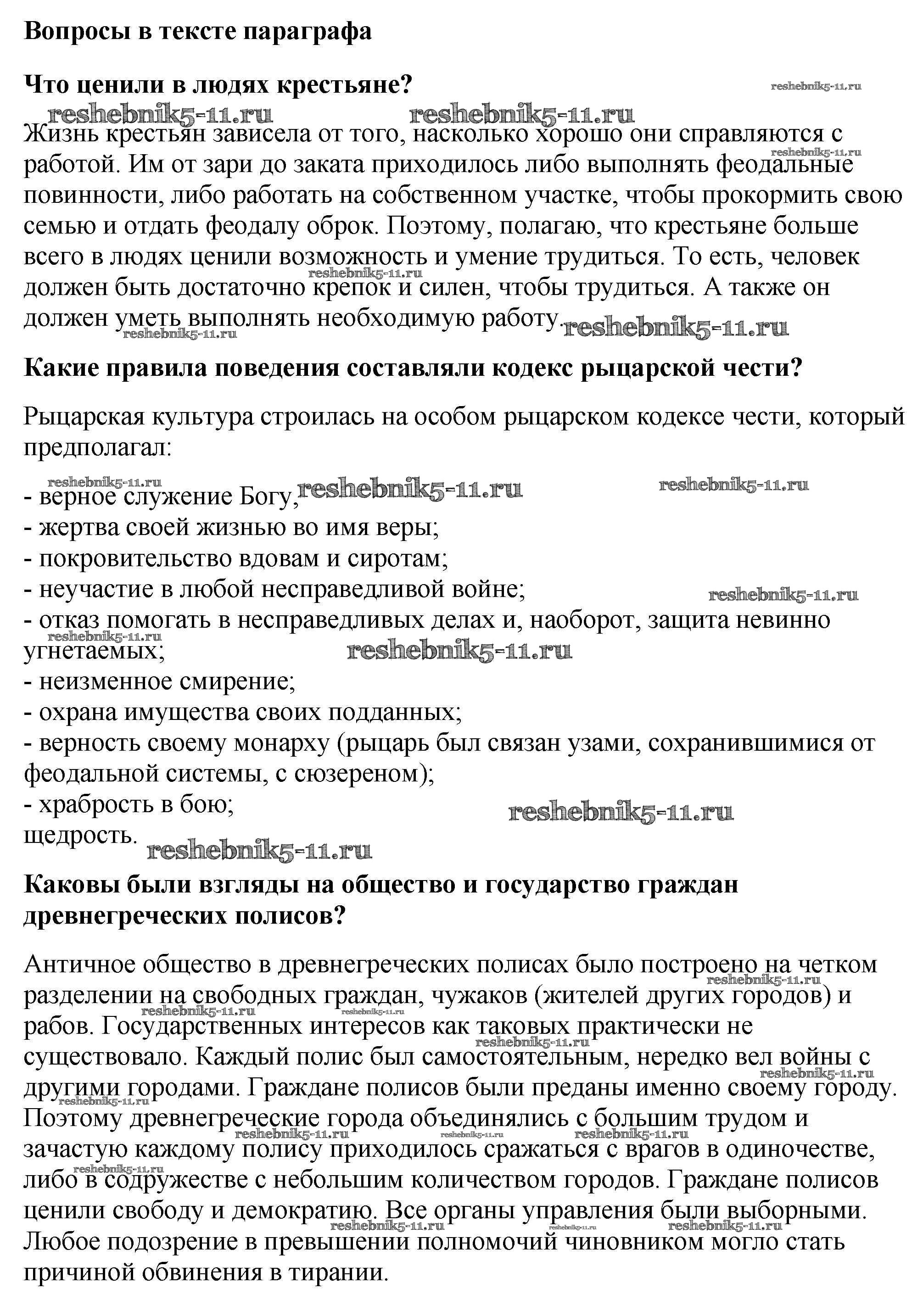 Готовая домашняя работа с ответами по Истории за 6 класс Агибалова, Донской Учебник Просвещение 2014 ФГОС - Вопросы в начале параграфа 1