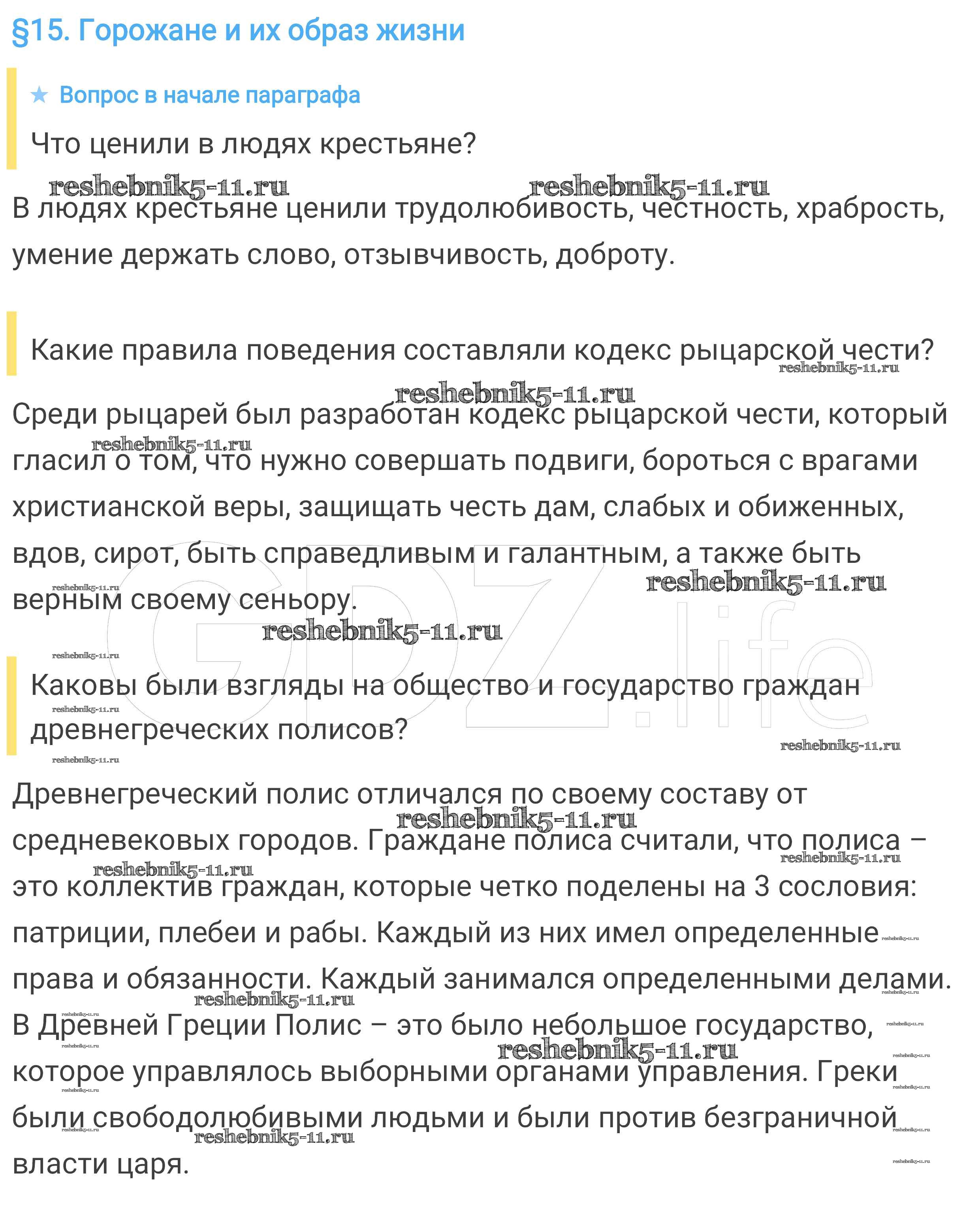 § 15. Горожане и их образ жизни